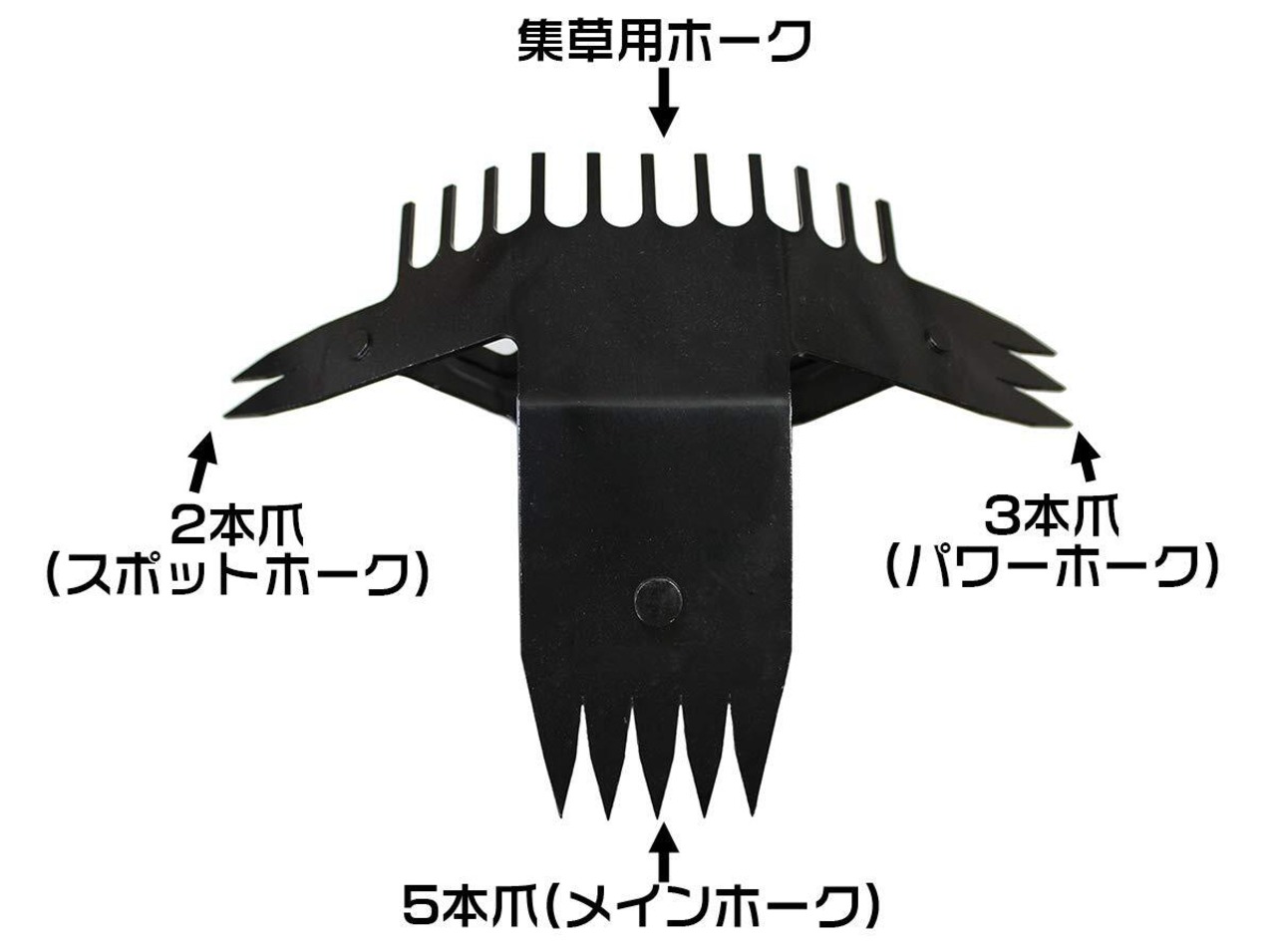 刃の上下左右に付いているホークは、広い面や狭い面、根の浅い草から深い草、除草後の雑草集めなど様々な場面で使えるよう考え出された便利な形状です。