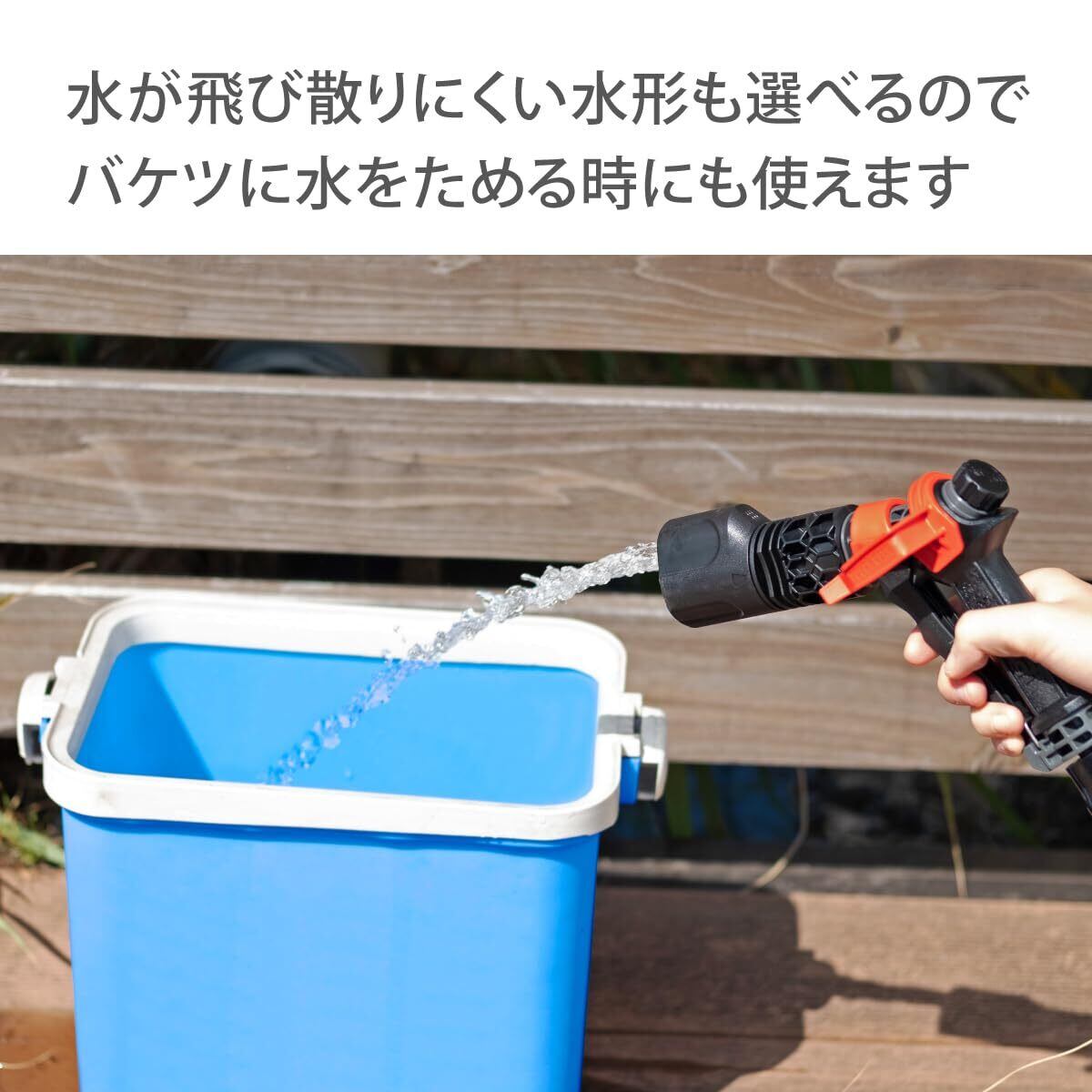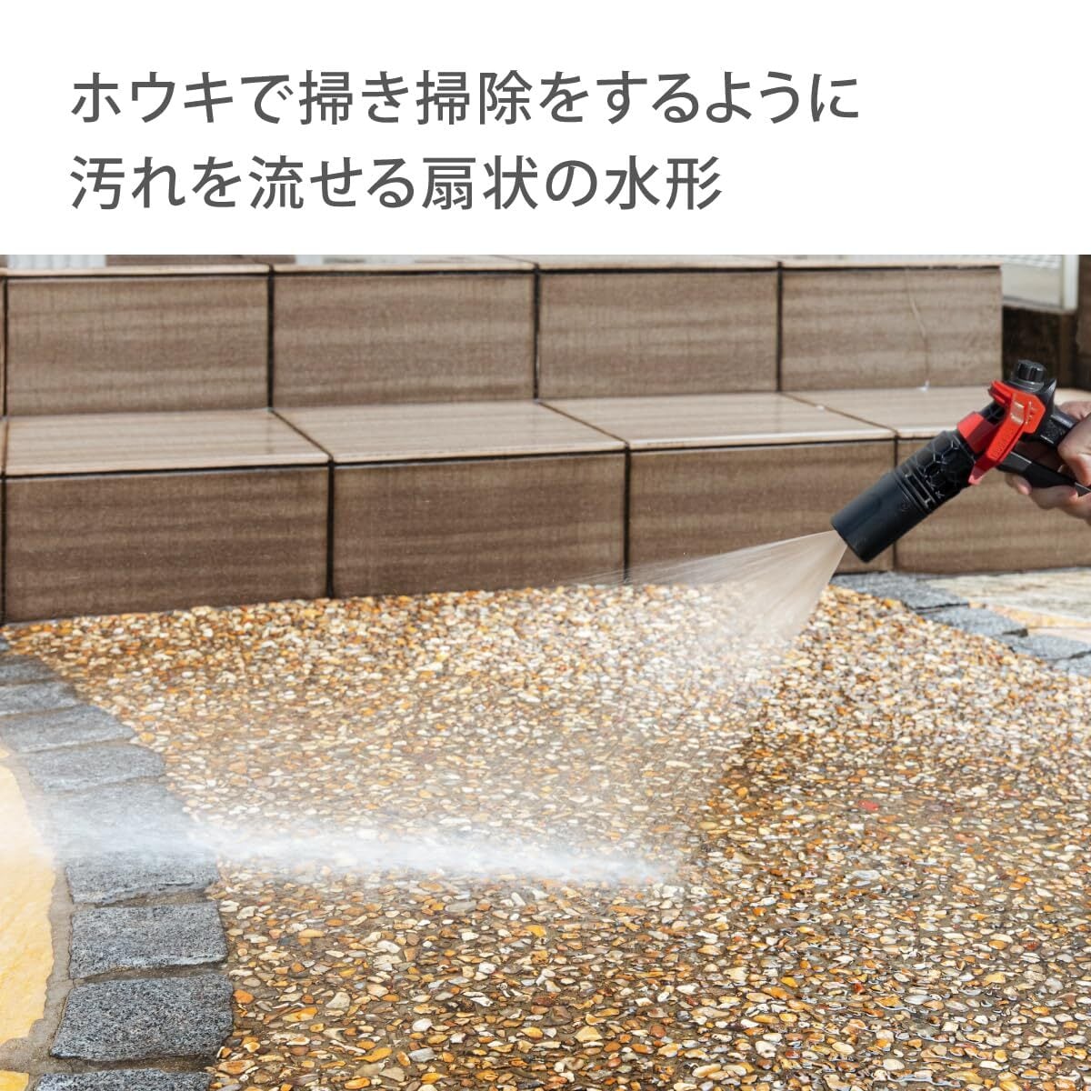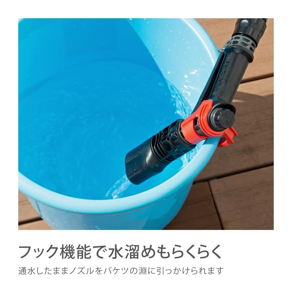 ●4水形の洗車・清掃向けの散水ノズルです。●つまみを回すことで流量調整が可能です。●赤いフック部分はバケツに引っかけられる仕様になっています。●2022年グッドデザイン賞にて受賞しました。