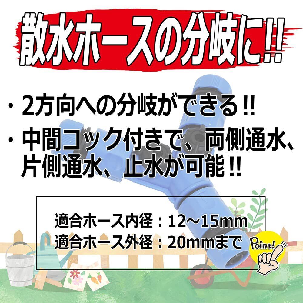 ・散水用ホースとホースをつなぎ、2方向へ分岐できる