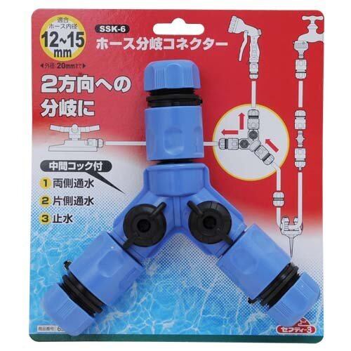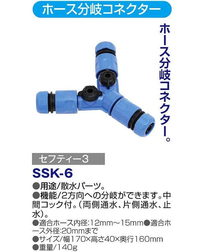セフティー3(Safety-3) 蛇口 ホース分岐コネクター 2方向 12~15㎜内径対応 中間コック付 SSK-6
