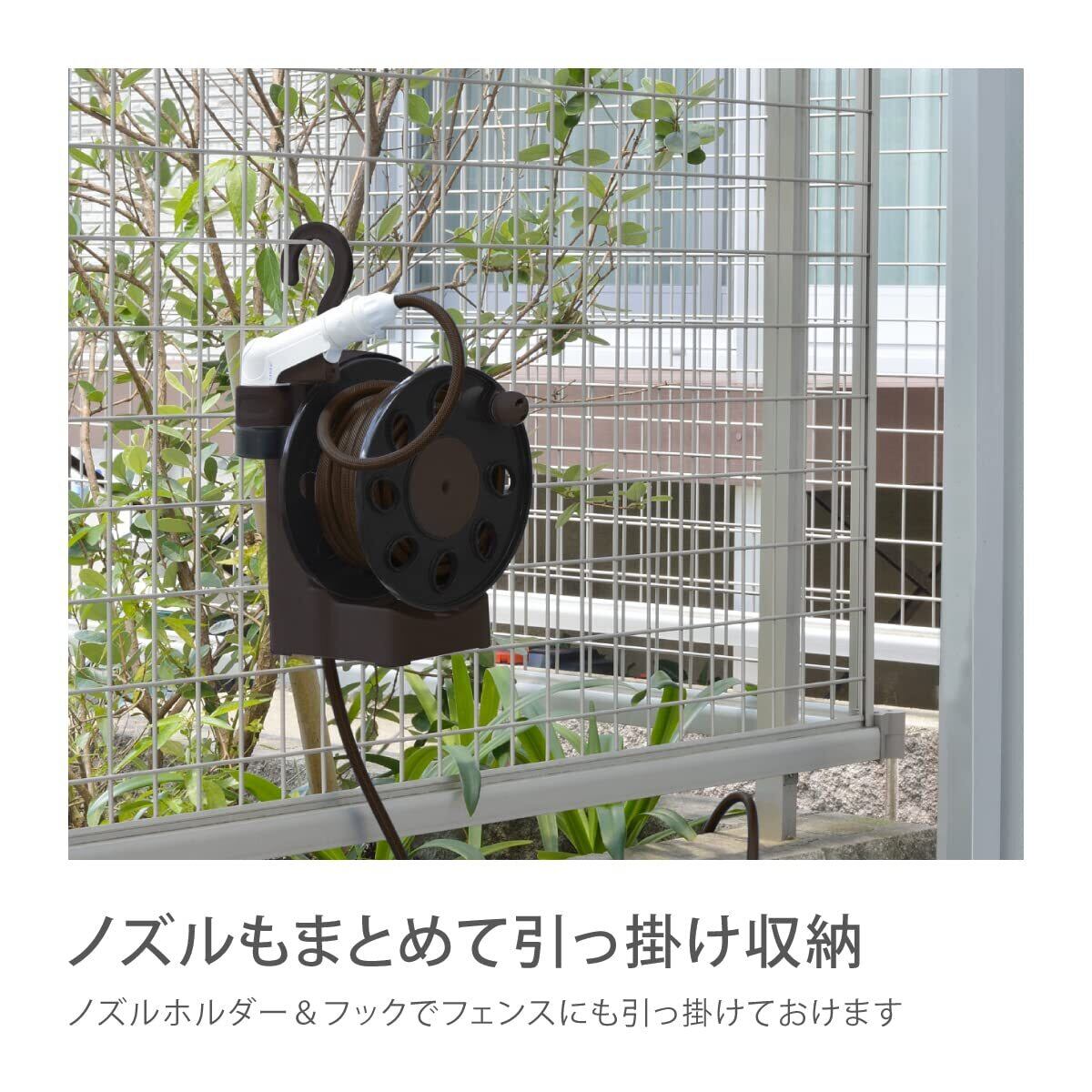お庭になじむブラウンカラーのホースリールです。