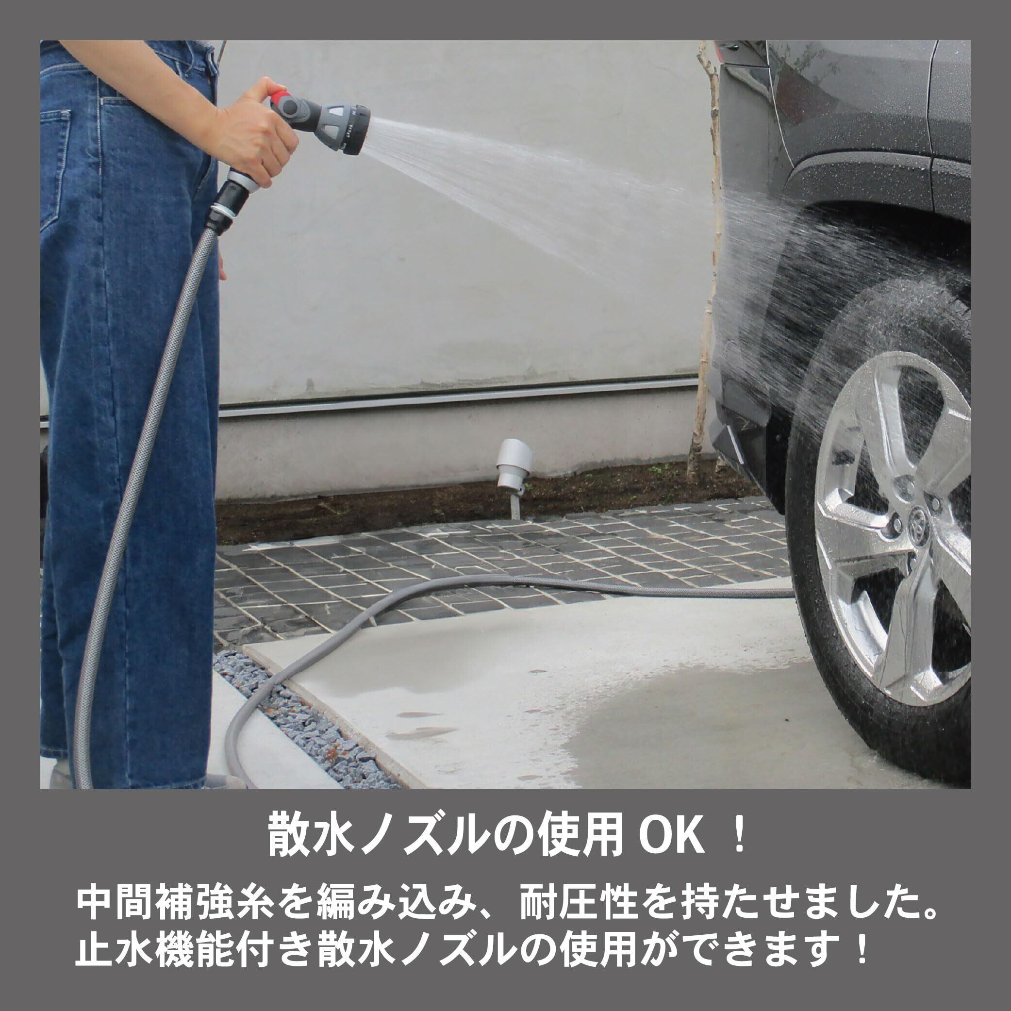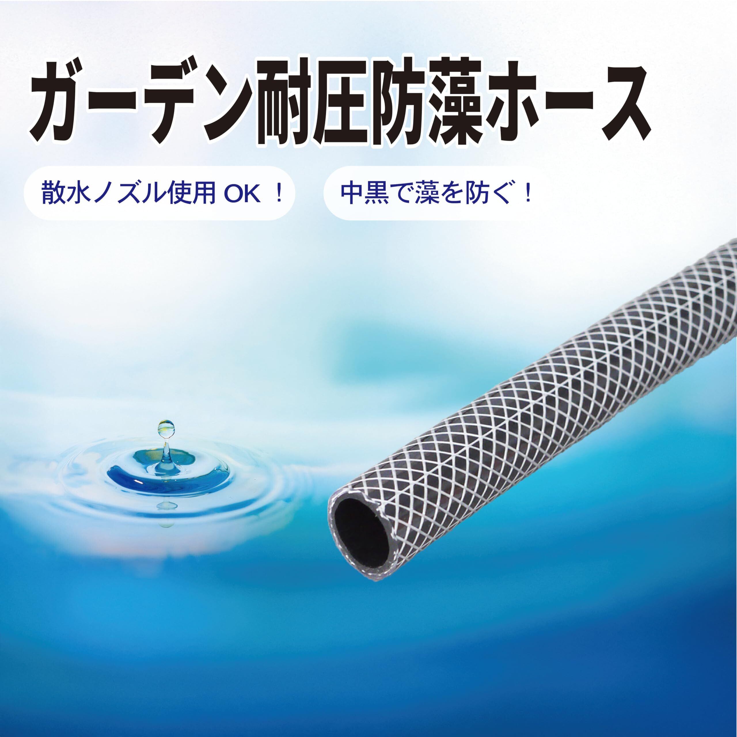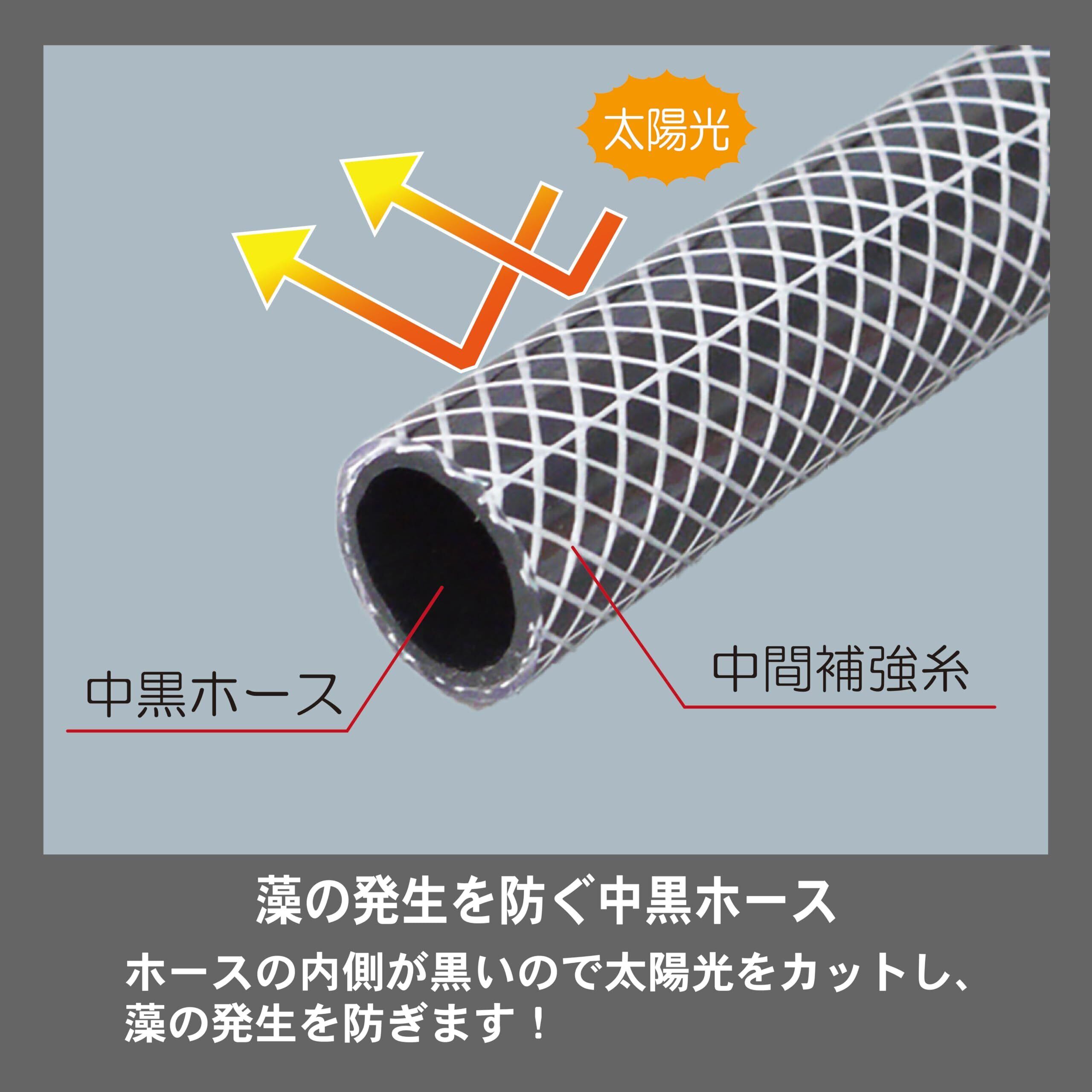 止水機能付きノズル対応、中黒ホースで藻の発生を防ぎ散水ノズルの目詰まりを防止