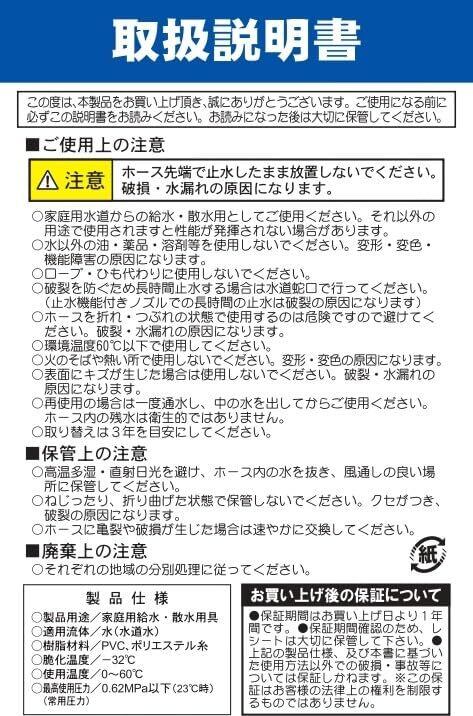 サイズ:内径15mm×外径19.5mm 長さ10m(一般水道蛇口に取り付け可能)