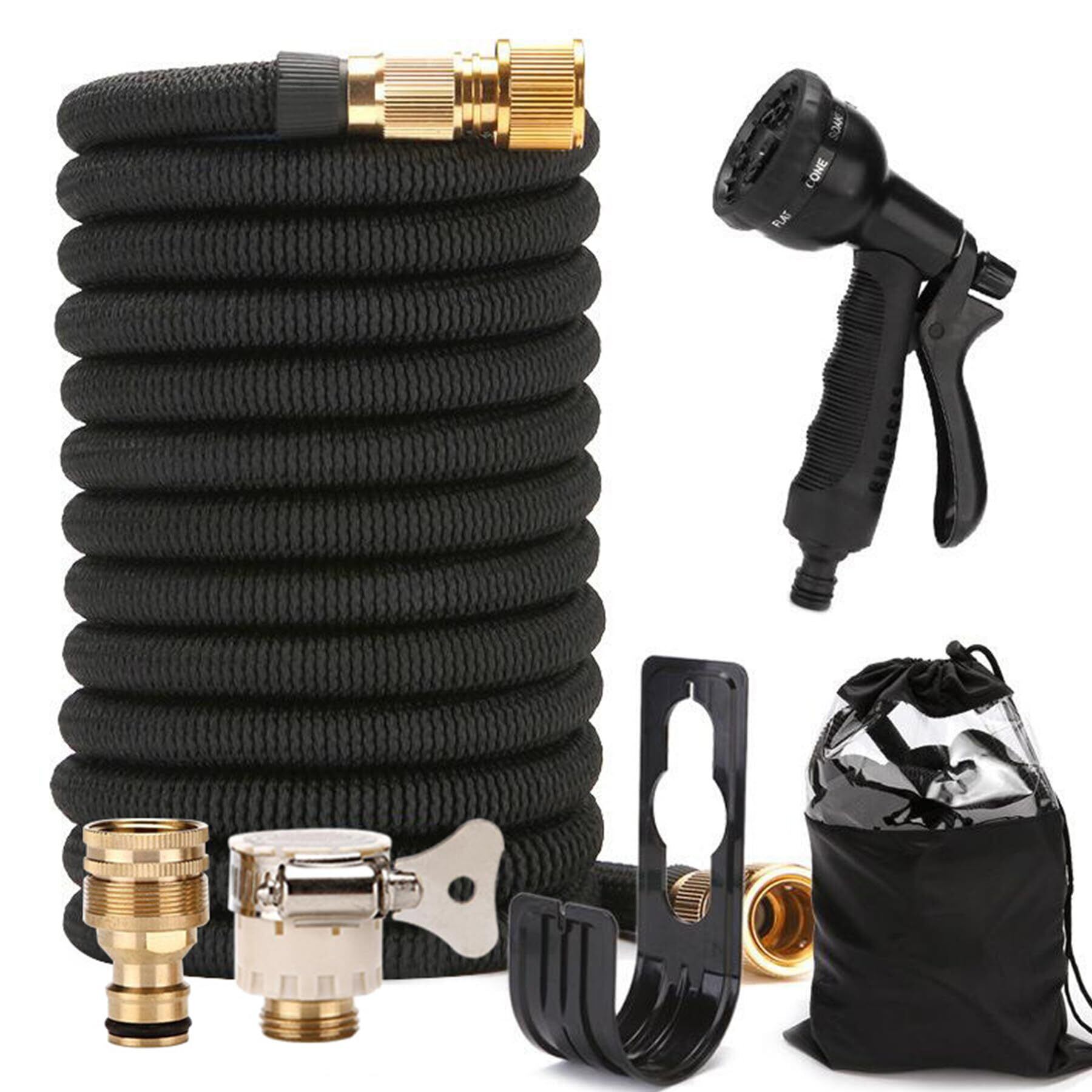 DADAGUAI(ダダグアイ) ホース 洗車 散水 伸びるホース 銅制コネクタ 伸縮 3倍伸びる ラテックス内層 8パターン 多機能蛇口継手付き 収納便利 お庭の水やり 水やり 洗車 ガーデニング ガーデン (ブラック, 5M-15M)