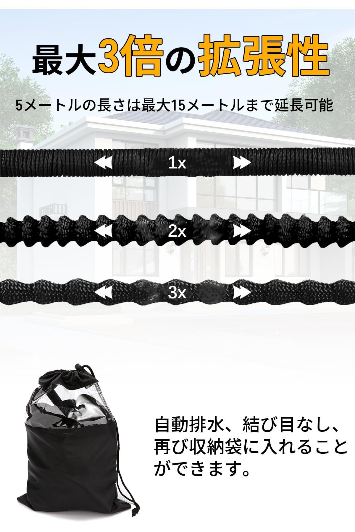 【高品質の材料】伸びるホース内層には伸縮性と回復性に優れた高品質2mmラテックスを採用し、伸縮ホースの耐久性と使用時の伸縮速度が向上しました。 外層は高品質の耐摩耗性ポリエステル繊維で作られています、伸びるホースが硬い路面を引きずったときに内側のラテックスが傷つくのを防ぐ。