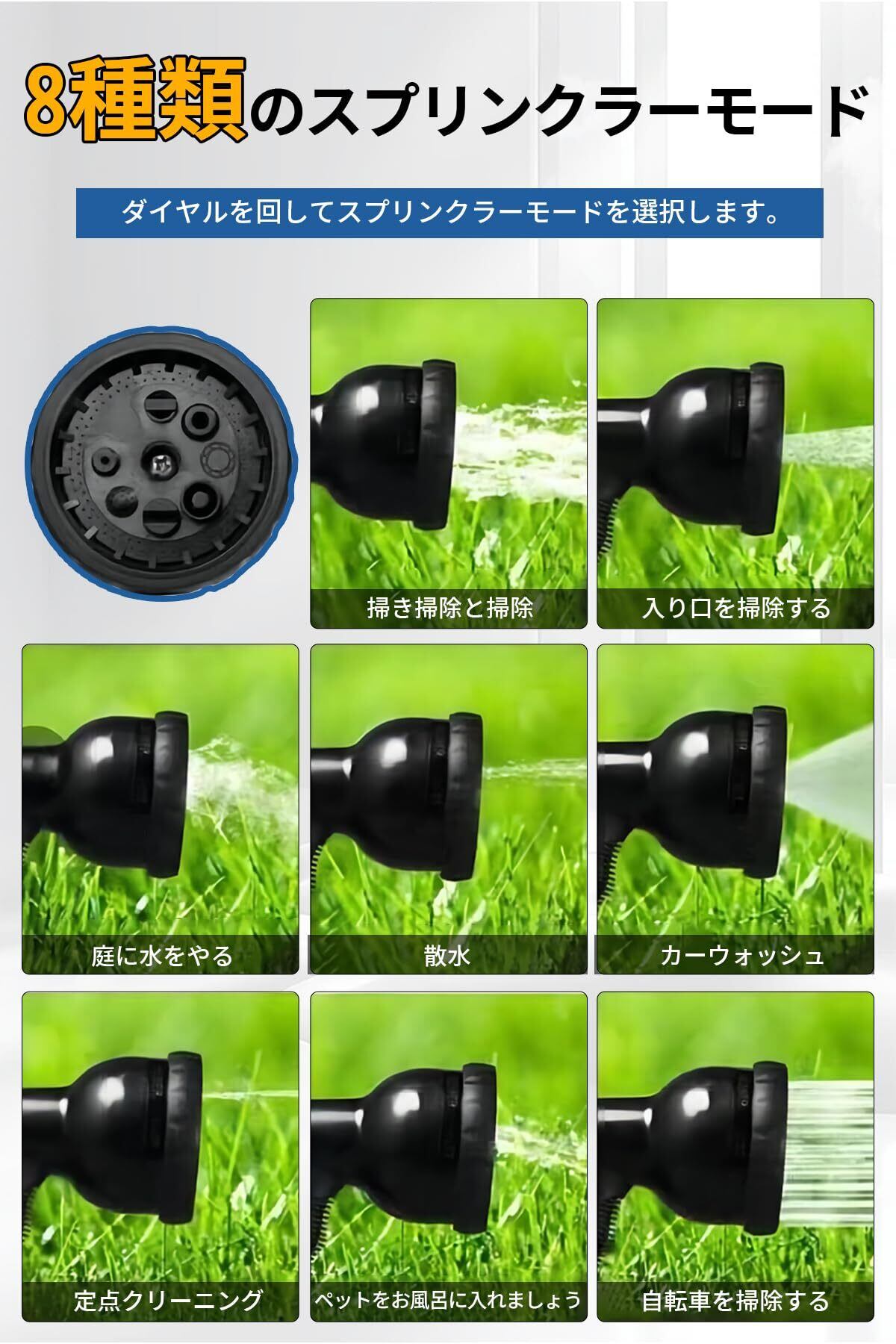 【3倍の拡張性】水を流すと約3倍まで伸びて遠距離の散水もできます。 また、他社の散水ホースに比べより分厚く、内側 からも破れにくく、水を流すと、水圧の影響で。ご注意:ホースの長さは水圧に応じて変化しますので、蛇口の水圧が0.3pa以上の場合、ホースは最大3倍の長さになります。