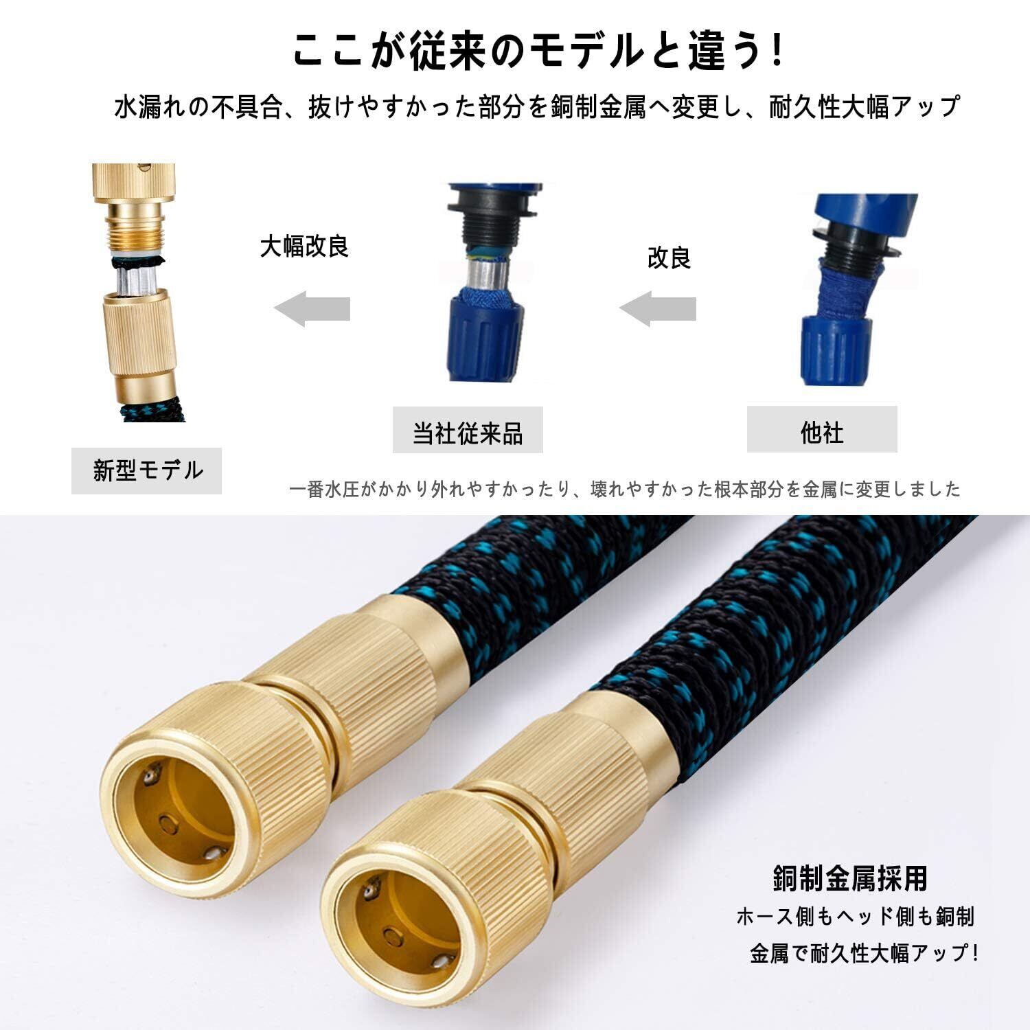 【改良の銅制金属採用、耐久性大幅アップ】:伸縮 ホースは今まで水漏れの不具合、抜けやすかった部分に銅製金属を採用し、壊れる心配なく、水漏れや腐食もございません