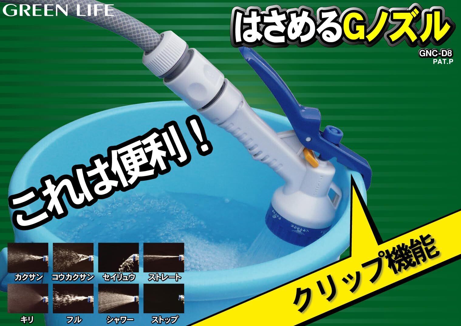 グリーンライフ 散水ノズル バケツにはさんで使える 通水状態を維持できるロック機能付きライトグレー はさめるGノズル GNC-D8