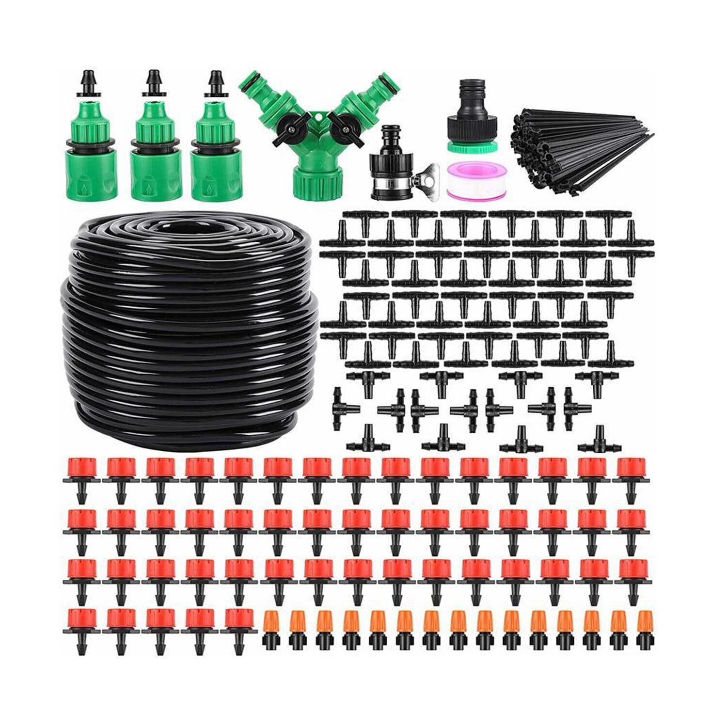 【環境に優しい素材】ABSから作られ、環境に優しく、無毒で、安全で耐久性があります。30mホース、ドリッパーとドリップノズル、スプレーノズル、蛇口コネクターアクセサリー、クイックジョイントコネクターなどが含まれています。
