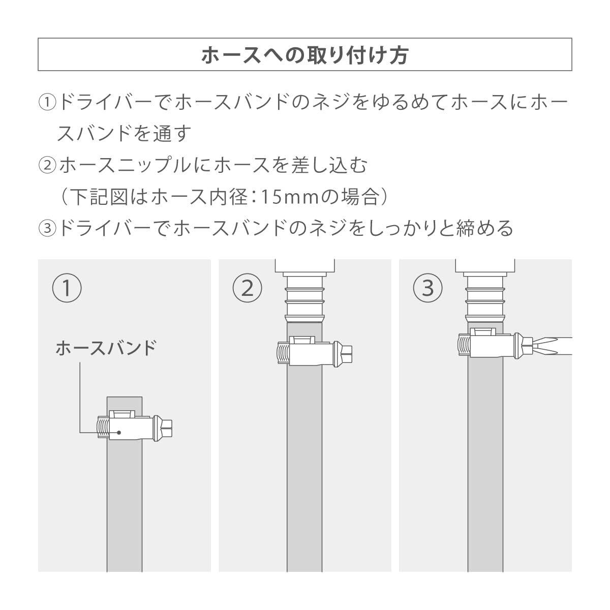 太ホース(内径15-18mm/外径22mm)に対応。