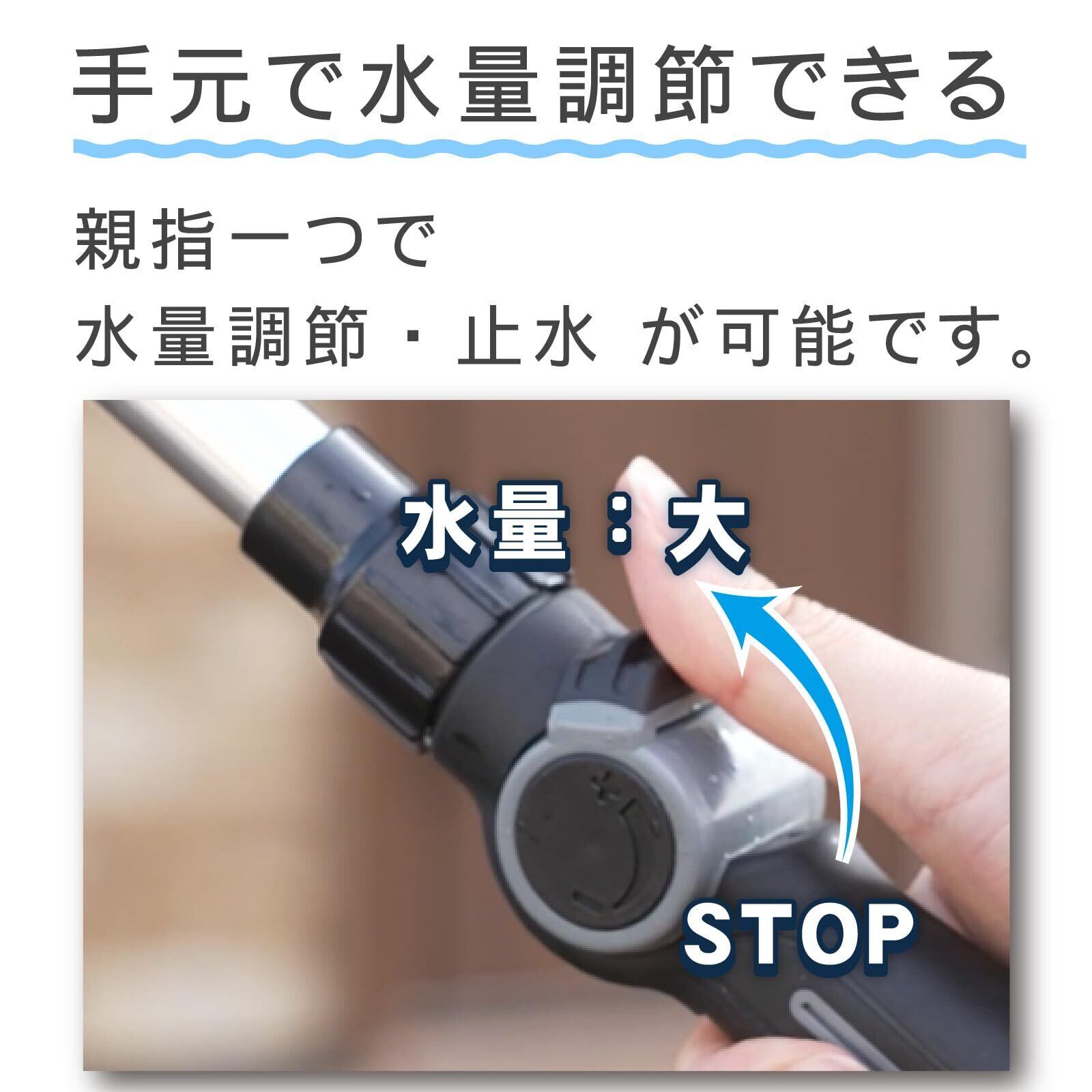 【水量調整レバー付き】手元にあるレバーを操作、親指ひとつで水量の調整が可能です。