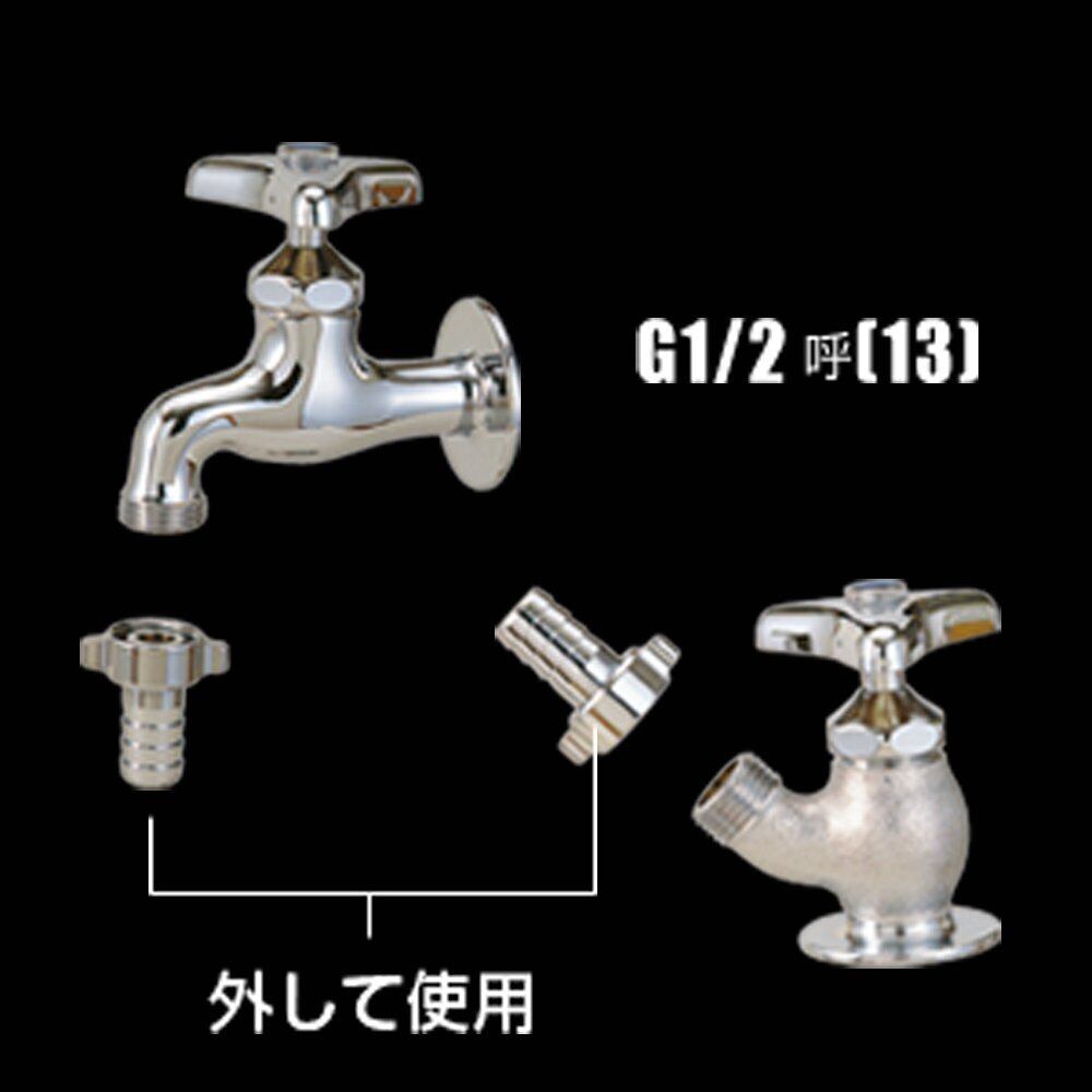 ネジ付き蛇口に取り付けて、コネクター(別売り)付きホースの取り外しがワンタッチに!取付られる蛇口はネジ付き蛇口、地下散水栓。
