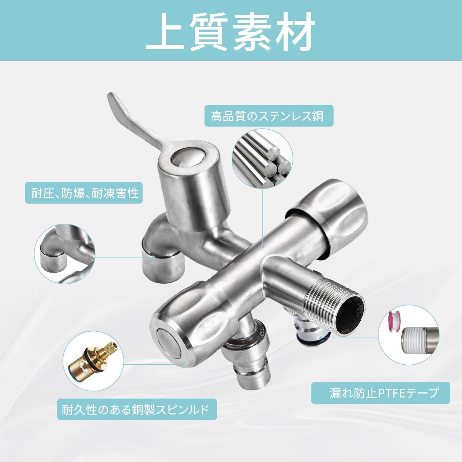 【こセラミックバルブ】:この3分岐蛇口はこセラミックバルブコアを搭載し、良好なシール性能と細かい排水口を備え、不純物を効果的に低減します。3分岐止水栓は、洗濯機、浴槽、バスルーム、キッチン、バルコニー、庭、屋外などの洗濯に適しています。