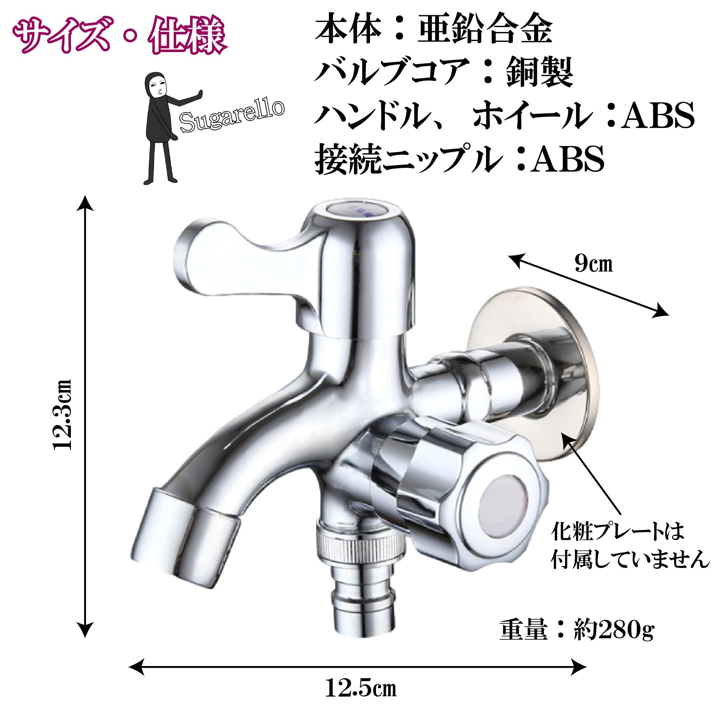 Sugarello 散水用 二口横水栓 呼び13 ワンタッチ接続 ホース 屋外水栓 水道 蛇口 二股 分岐水栓 庭 花壇 屋外 亜鉛合金 ABSハンドル 全銅バルブコア