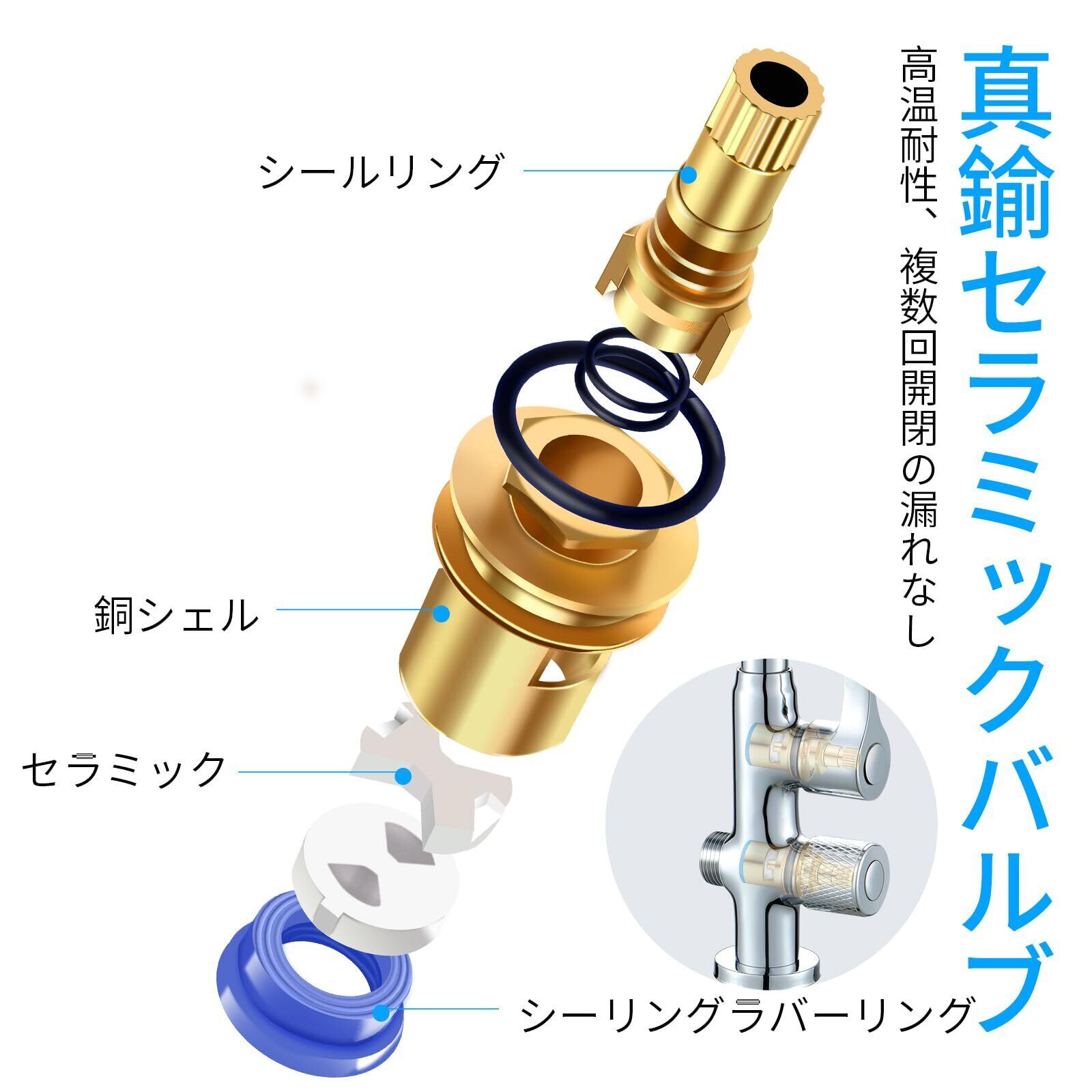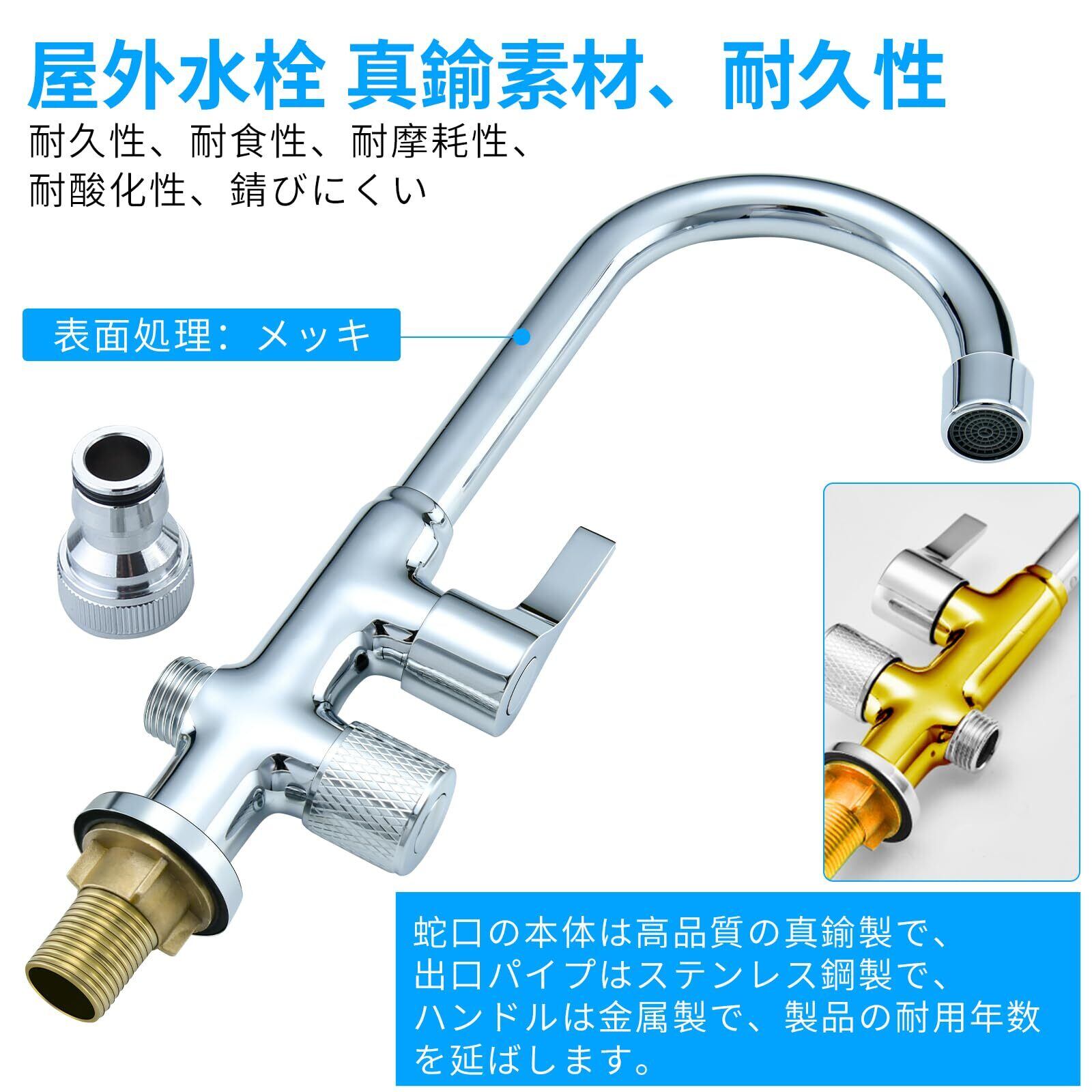【表面処理】本品の蛇口表面は多層メッキ処理を採用。銀色光沢により空気中の酸性物質を効果的に遮断、腐食・錆を防止し製品寿命を延伸。なめらかな表面仕上げのため、柔らかい布で軽く拭き取るだけで汚れを除去可能です。