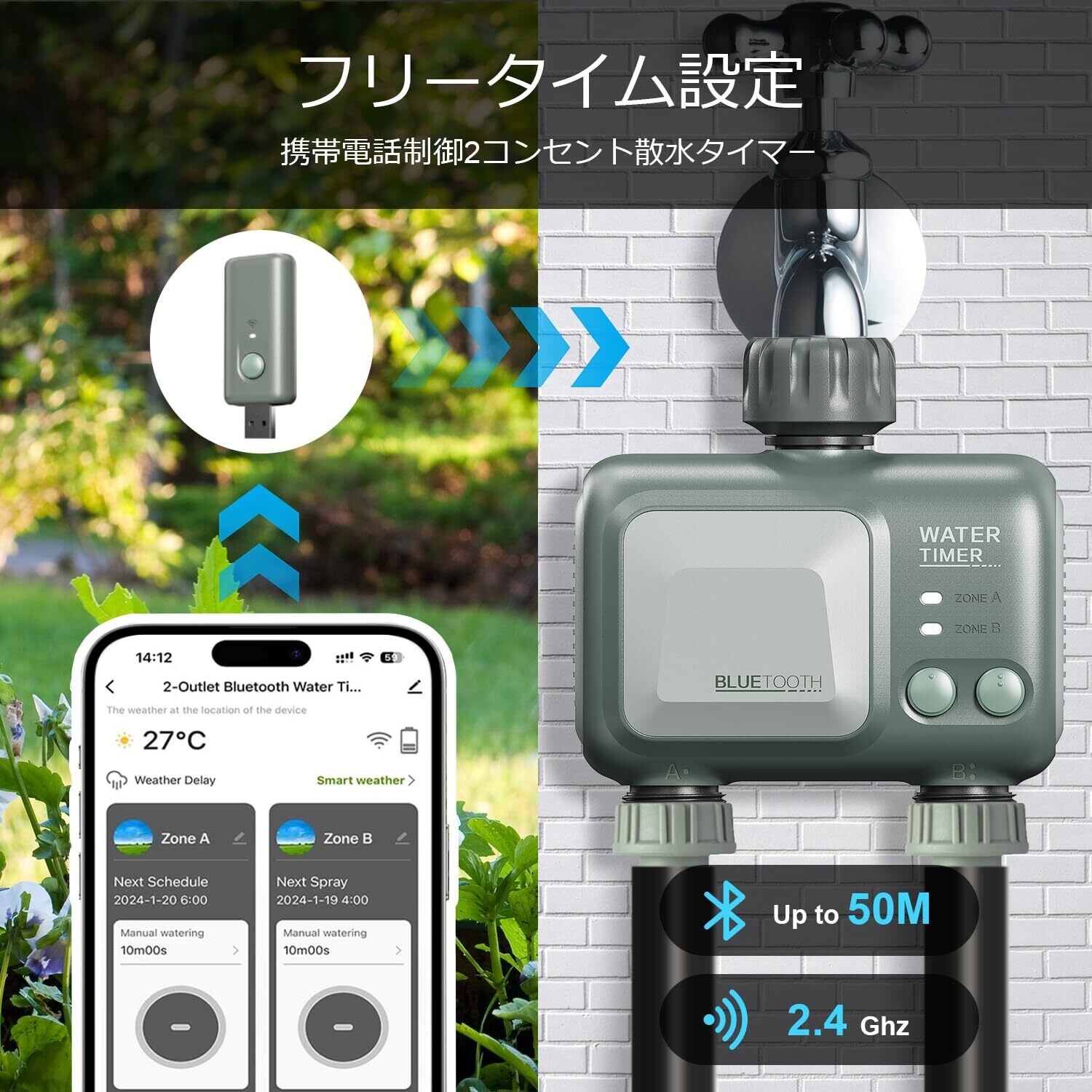 自動散水タイマー 散水ホース 2アウトレット
