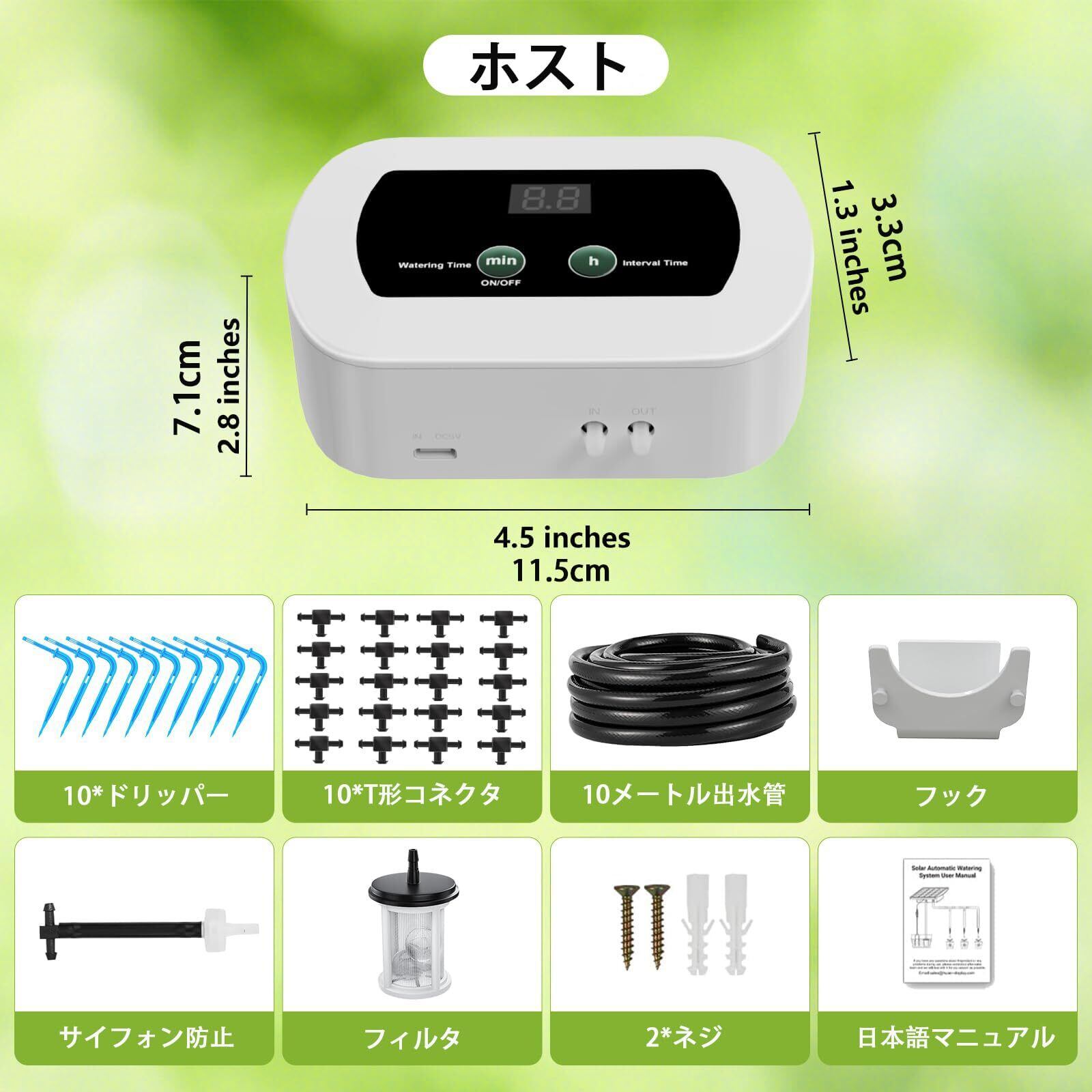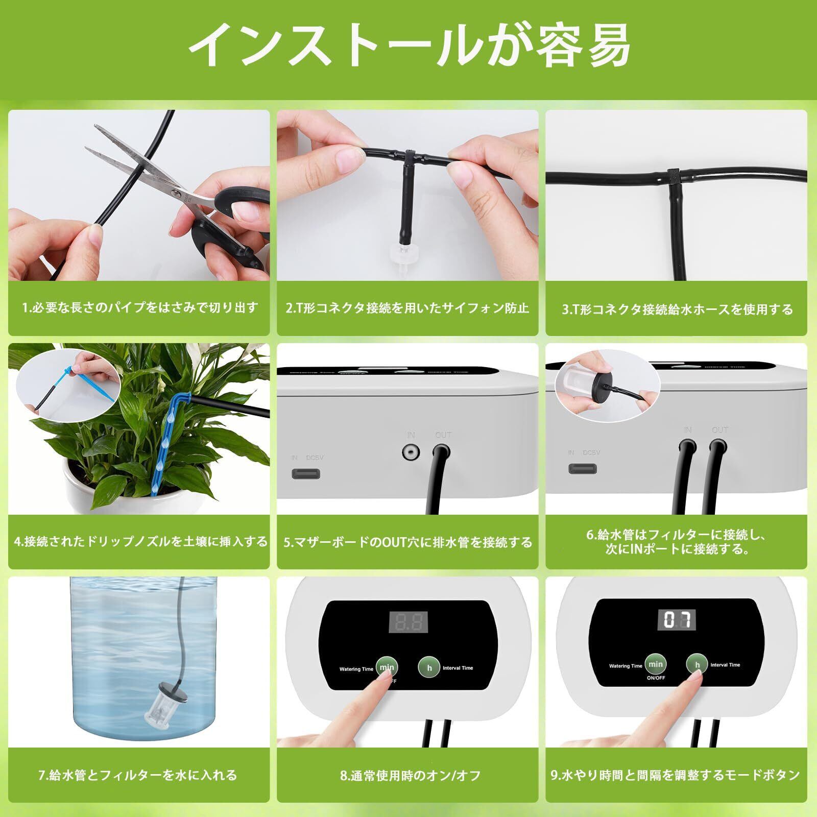 包装リスト:点滴灌漑システムキットには、統合ポンプタイマー、10 mホース、10*ドリッパー、サイフォン防止、フィルタ、止め輪、水道プラグ、説明書が含まれています。(1年間、自動水やり機 問題が発生した場合は、24時間以内に解決するためにご連絡ください。)