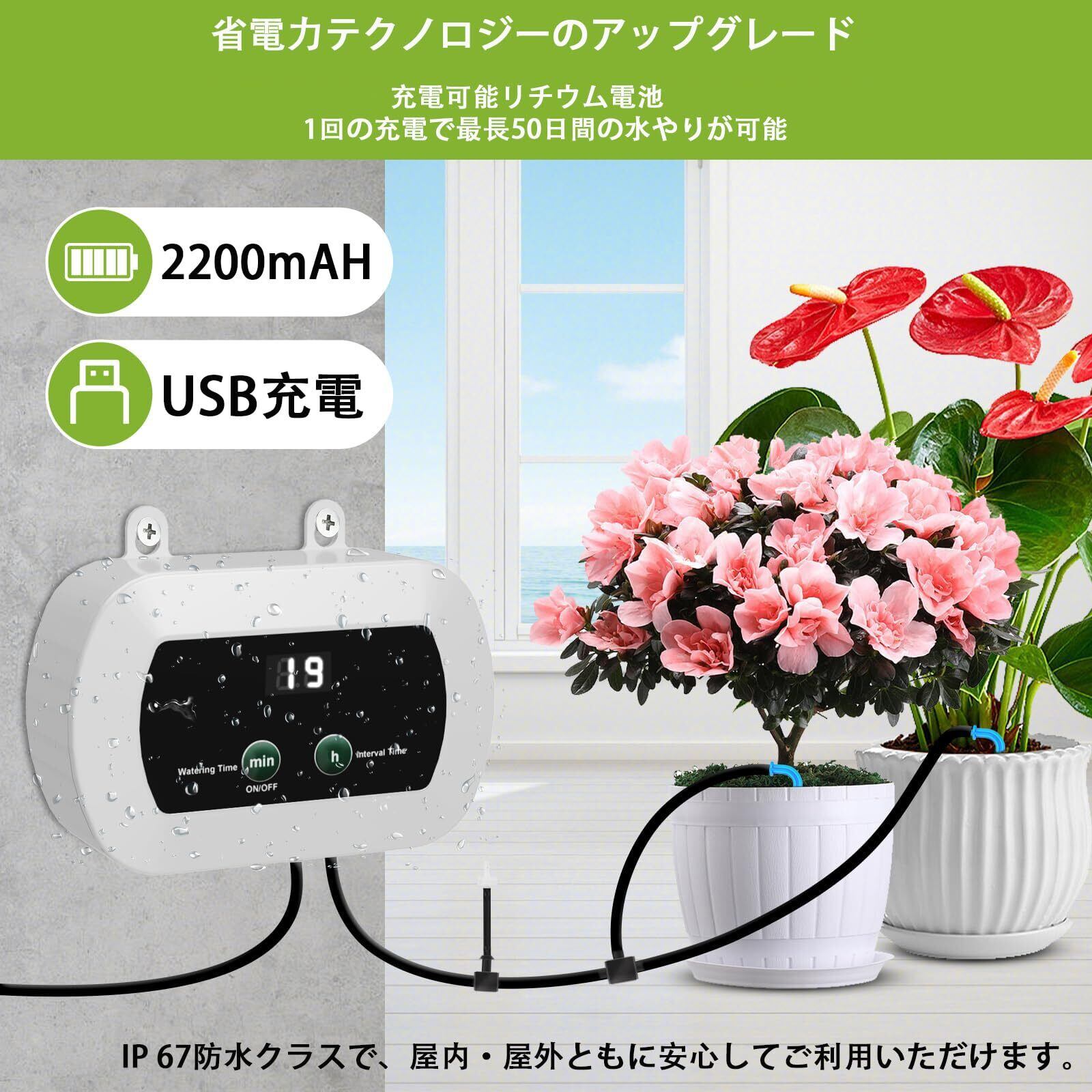 自動水やり:HUIZHOU点滴灌漑ユニットには独立したポンプタイマー(集積された2200 mAh電池付き)新しい省電力技術がアップグレードされ、USB電源を使用して充電され、1回の充電で最長50日間使用できるようになった、晴天でも曇天でも植物に信頼性の高い灌漑を確保することができる。