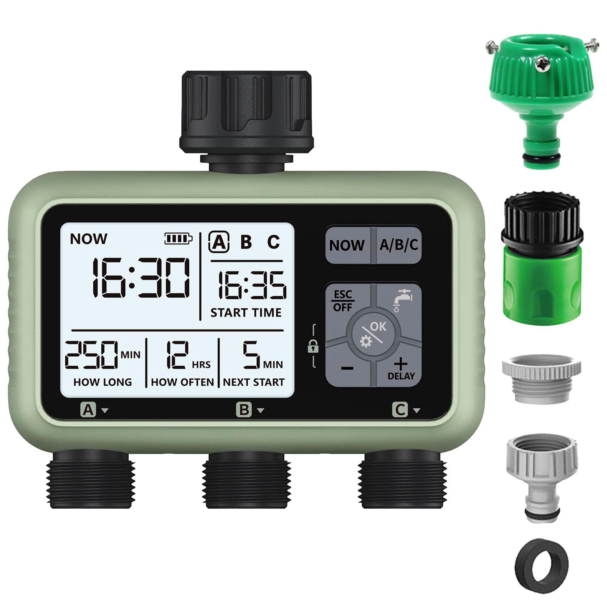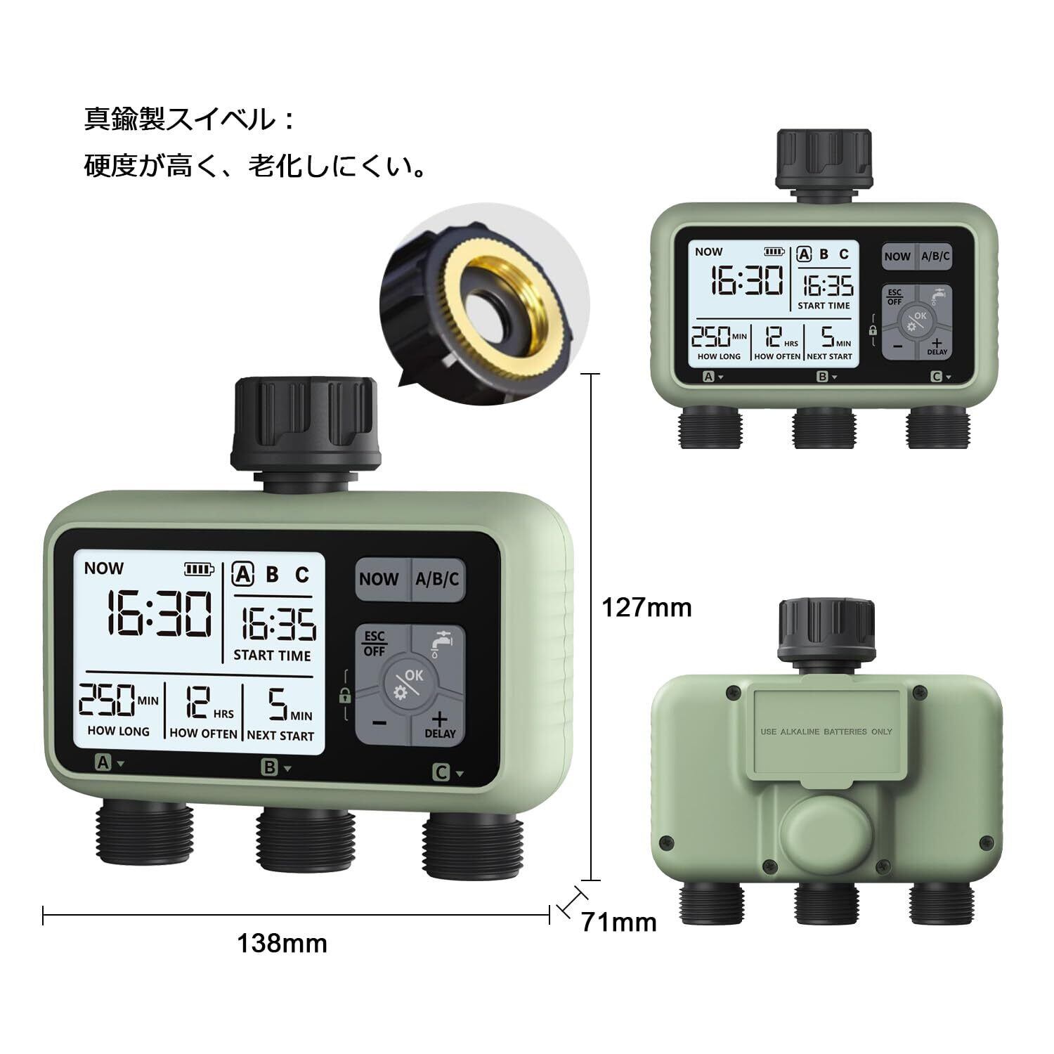 「3つの独立した散水エリア&真鍮材料インターフェイス」:この新しくアップグレードされた灌漑システムは、3つの独立したバルブが装備されている、あなたはより柔軟にあなたの散水計画を設定し、完全に1台のマシンのデュアル-目的機能を実現することができます。新しくアップグレードされた黄色い銅の材料インタフェース、より強い、より強い耐腐食性。