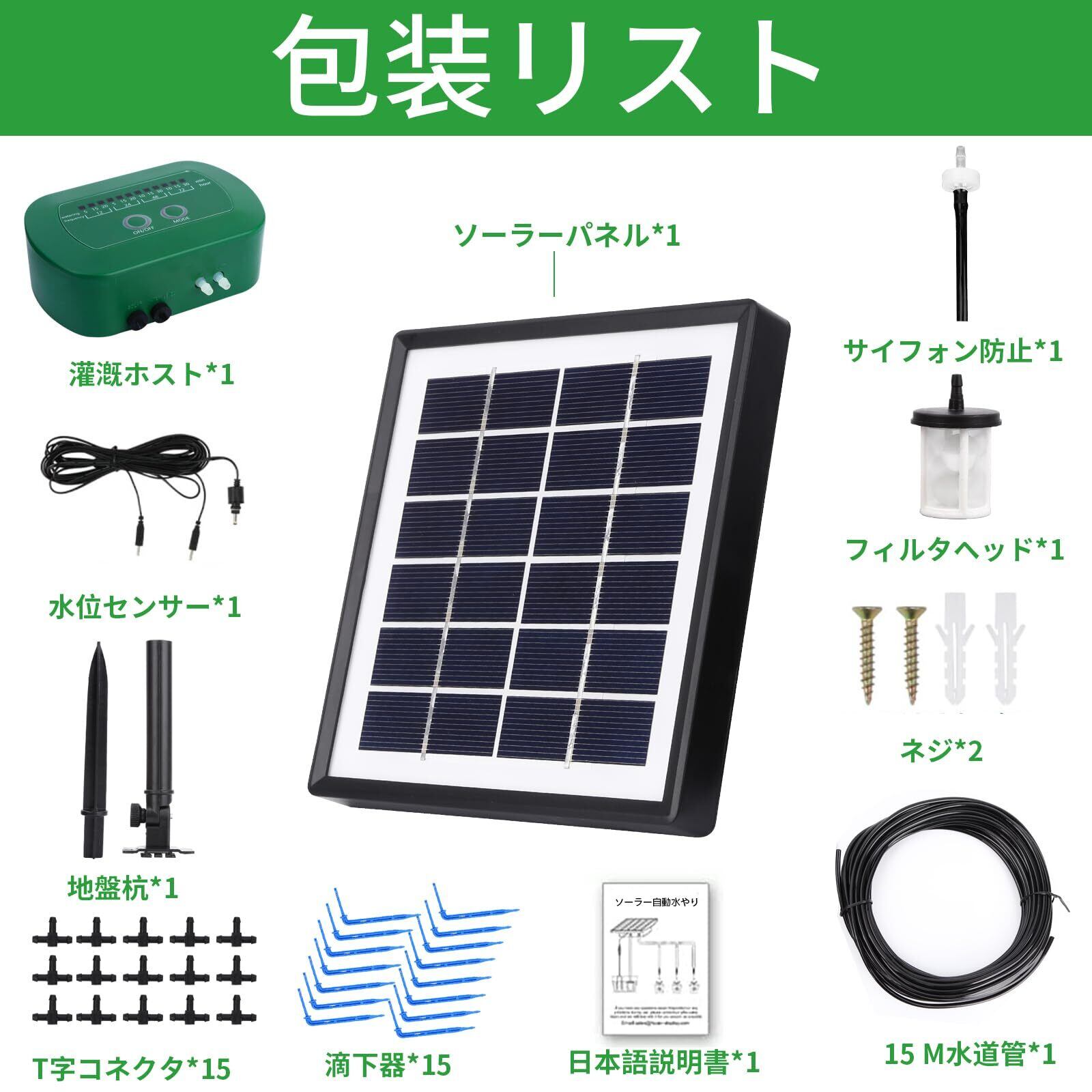HUIZHOU 自動水やり 植物 ソーラー最新点滴灌漑システム、12個のタイマーモードの自動灌漑システム+15Mホースを持ち、ガーデン、ベランダ植物、アウトドア盆栽に用いられる、同時に15鉢の植物に水をかけることができる | KSショップ