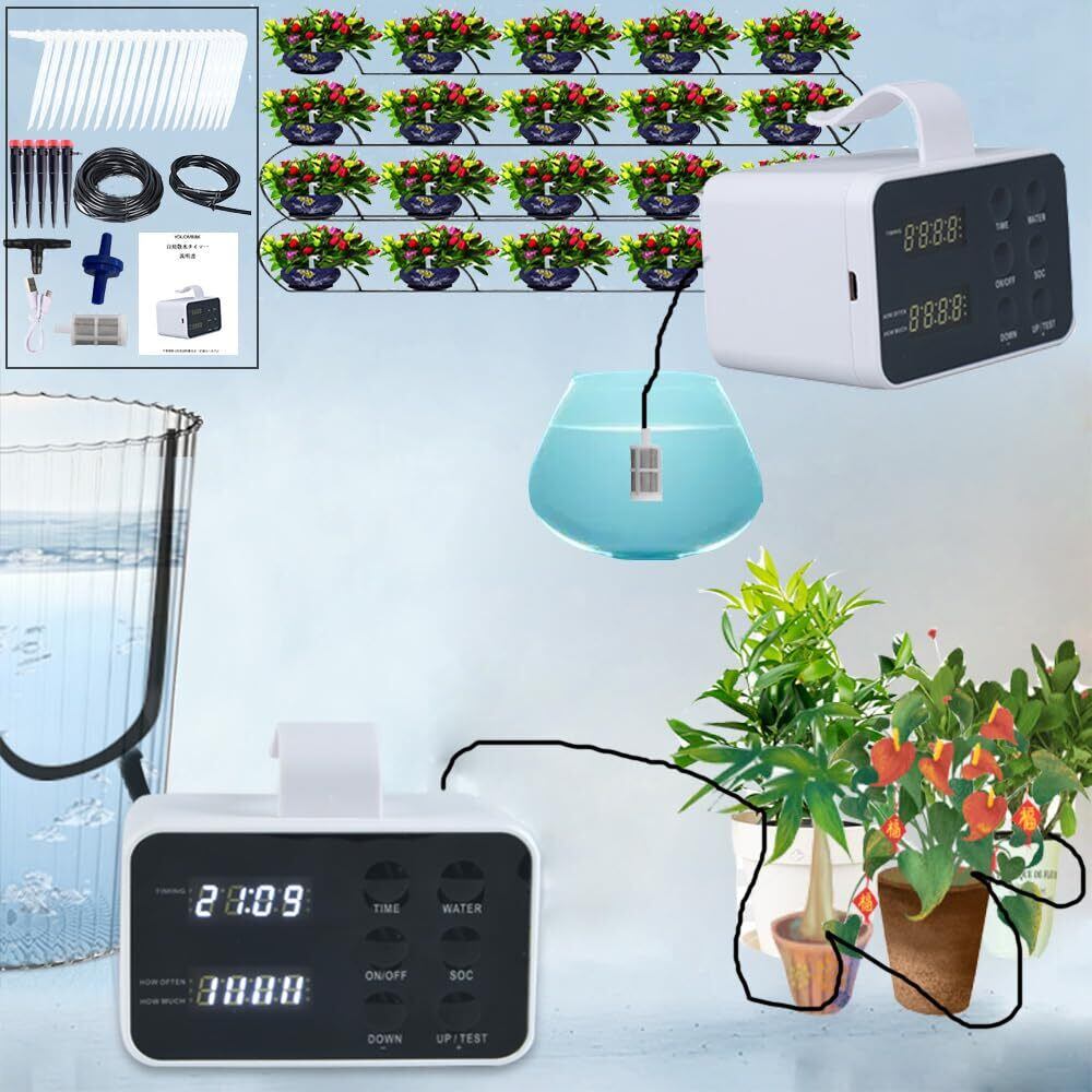 新型人気 散水タイマー 給水タイマー 自動散水機 給水器 植物 同時に20鉢対応可能 自動水やり機 水やり 自動 自動給水器 植物 器 散水用具 USB充電 灌漑 自動点滴 留守盆栽庭園自動室内外 日本語説明書付き