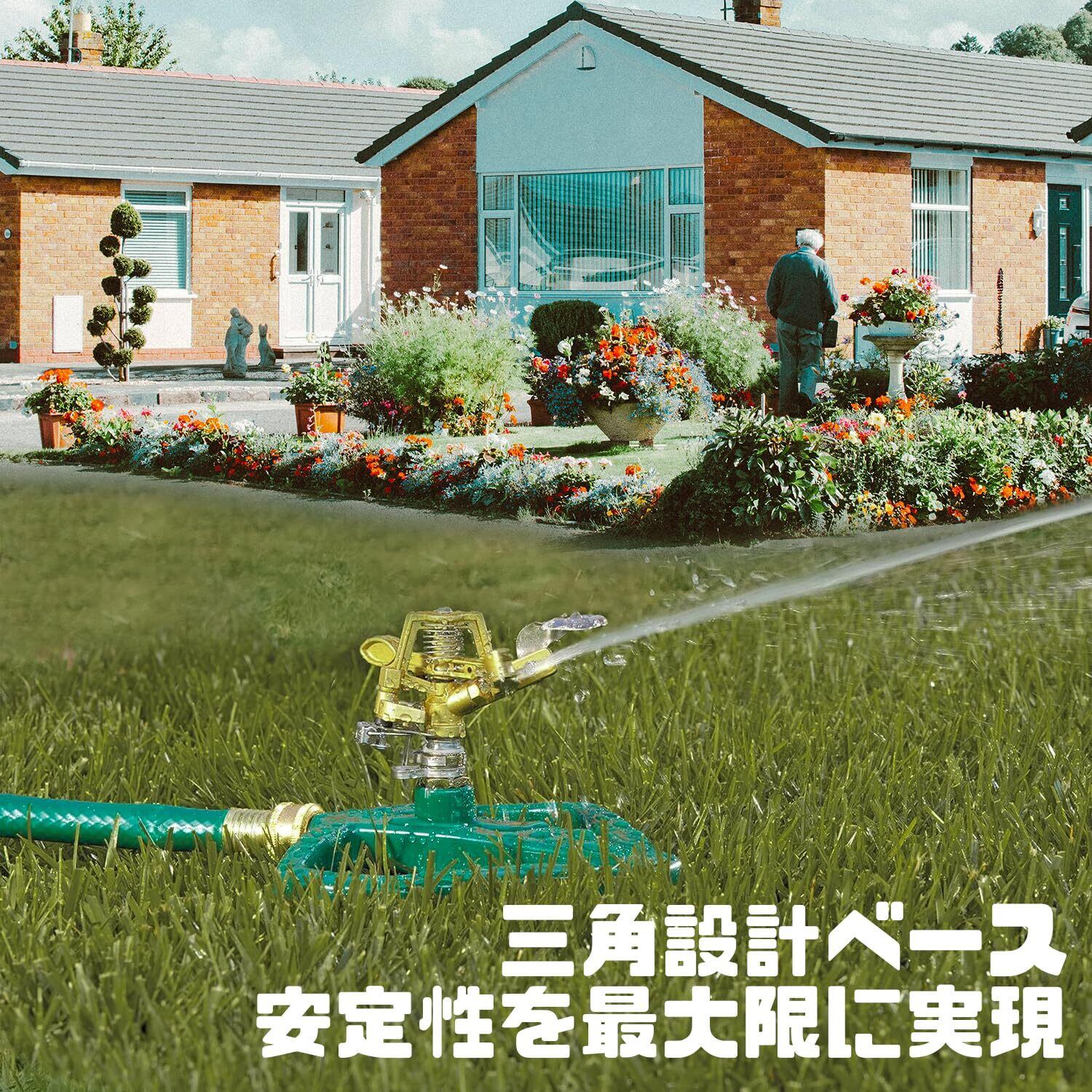 【360度に回転可能】水道ホースに接続するだけで簡単に設置可能な360°回転型スプリンクラーです。ホースから供給される水圧を利用し、360度回転して広範囲に水を撒くことが実現、手間をかけずに植物に必要な水分を届けることができます。毎日の庭仕事をもっと楽しく、もっと効率的。ご注意:動作水圧は20~80 PSlでございます。110PSlを超えようご注意ください。スプリンクラーを破損する原因となっております。