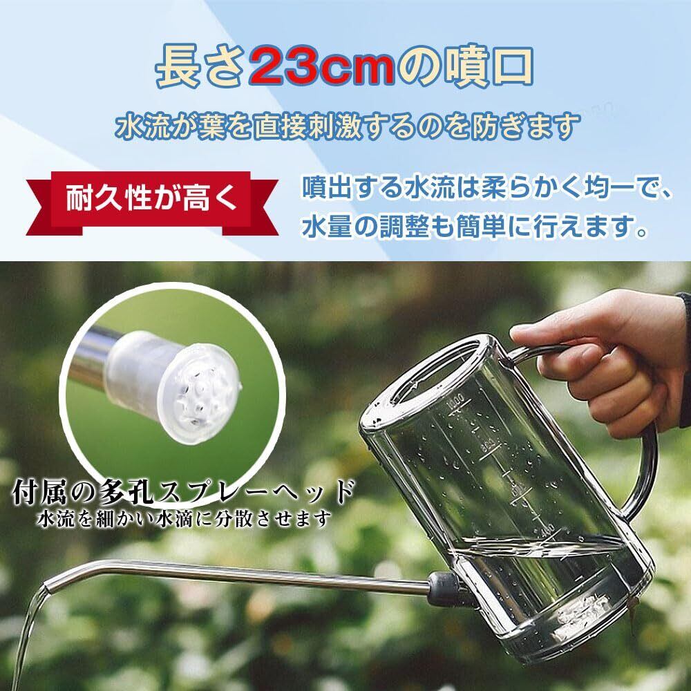 【注意:使用中に何か問題が発生したり、製品に不満があったりした場合は、いつでも連絡してください。サービスを提供し、最善のソリューションを提供します。】高品質な金属製噴口で正確に水やり:長さ23cmの金属製ロング噴口を採用。頑丈で錆びにくく、細長いデザインが特徴です。水を正確に植物の根元まで届け、効率的な水やりを実現。葉を濡らさず、室内観葉植物や小さなガーデニングスペースに最適です。