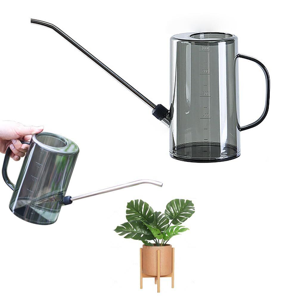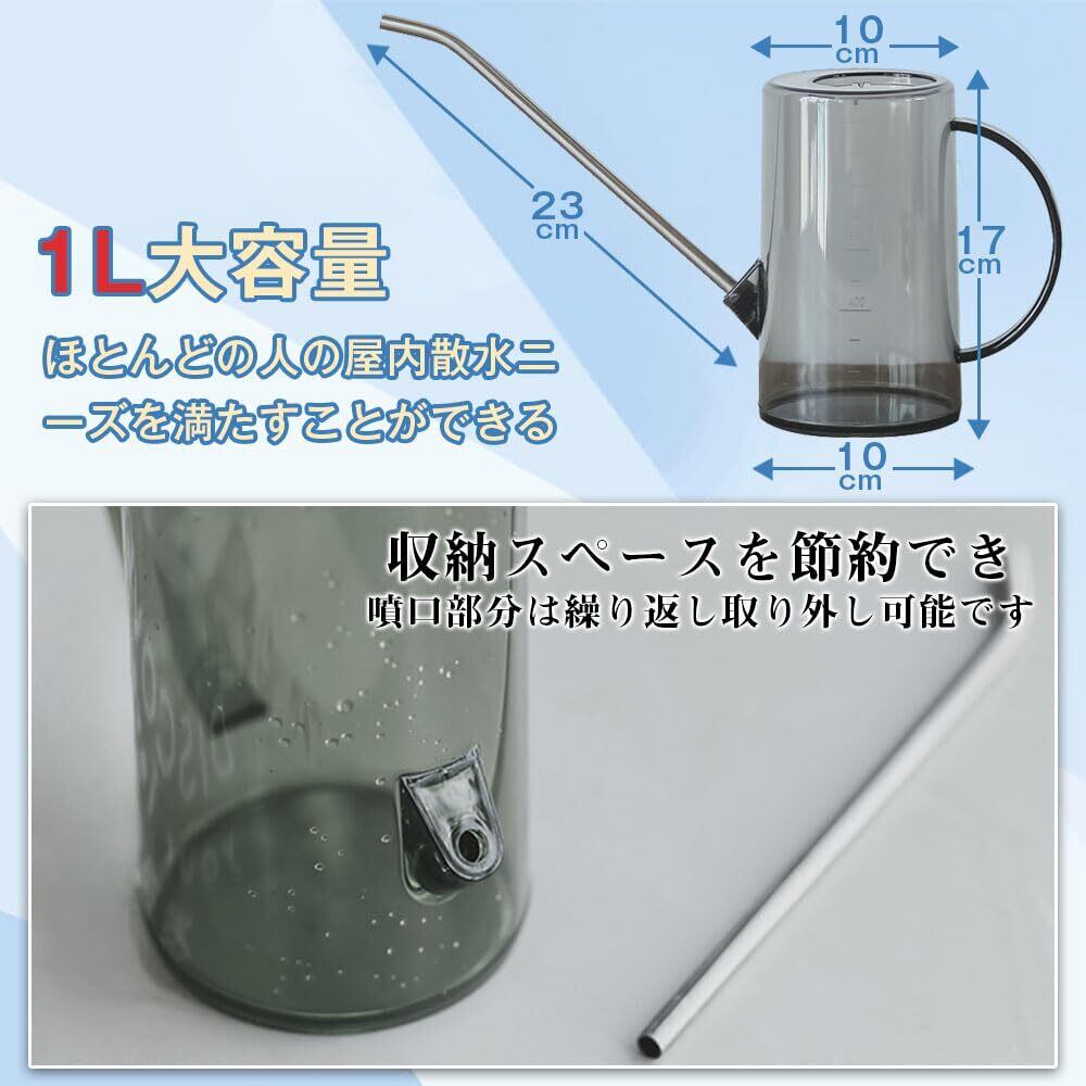 JetWave じょうろ 水差し 園芸 プラスチック製 透明ボディ 目盛り付き 1L容量 金属製23cm長い噴口 観葉植物やガーデニングに最適 園芸用品