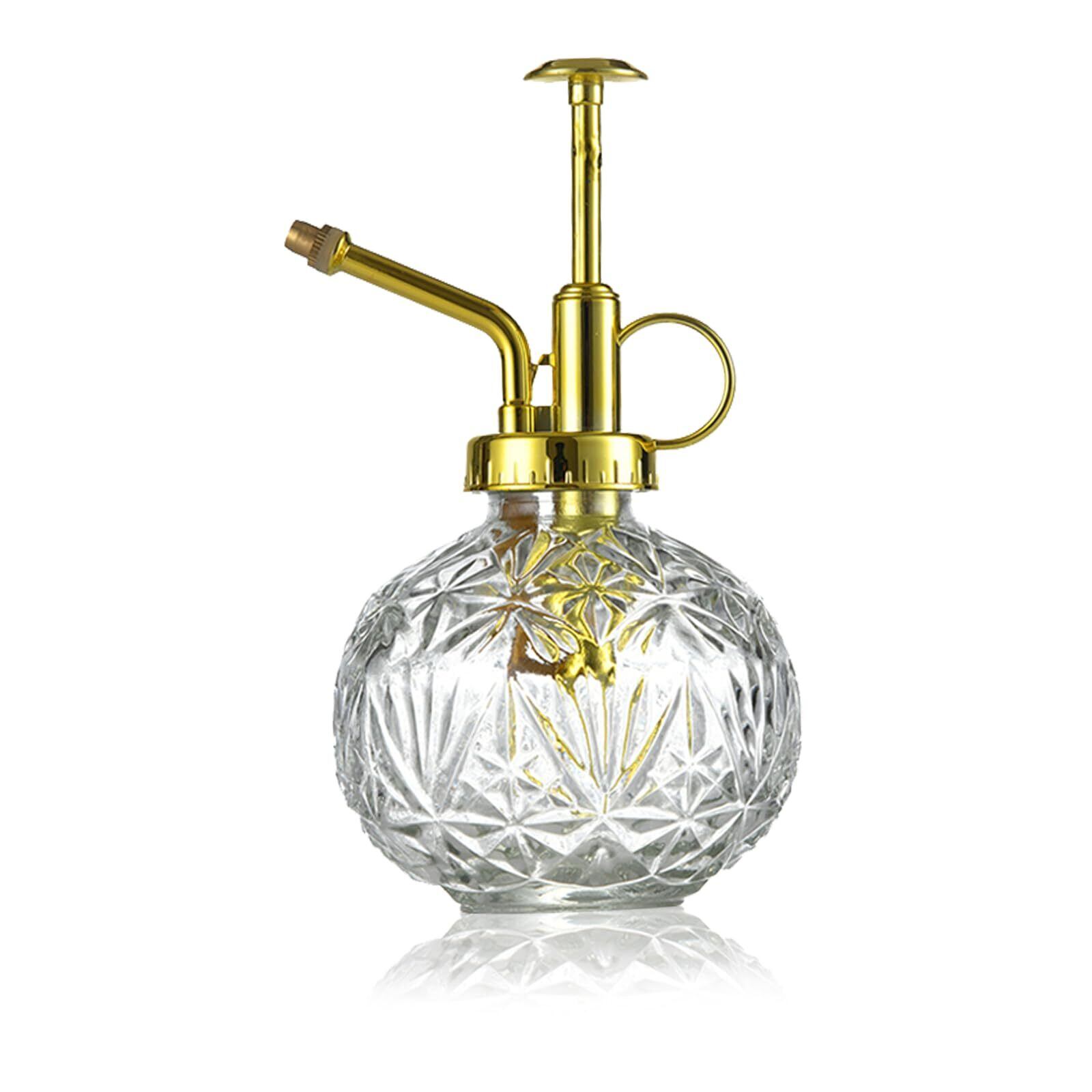 LanQii 霧吹き じょうろ 240ミリリットル ガラス 植物 園芸 アンティーク調 インテリア アウトドア おしゃれ 観葉植物 掃除 スプレー 水差し 散水 安定した散水が行える ガーデニング 水やり 花壇 フラワー 栽培 オフィス 小さい 240ml トランスペアレント+ゴールドノズル | KSショップ