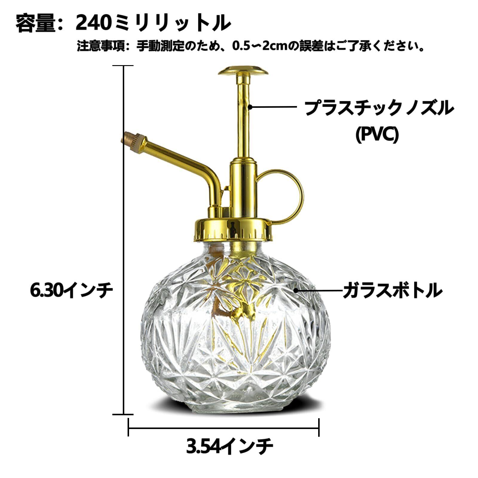 LanQii 霧吹き じょうろ 240ミリリットル ガラス 植物 園芸 アンティーク調 インテリア アウトドア おしゃれ 観葉植物 掃除 スプレー 水差し 散水 安定した散水が行える ガーデニング 水やり 花壇 フラワー 栽培 オフィス 小さい 240ml トランスペアレント+ゴールドノズル