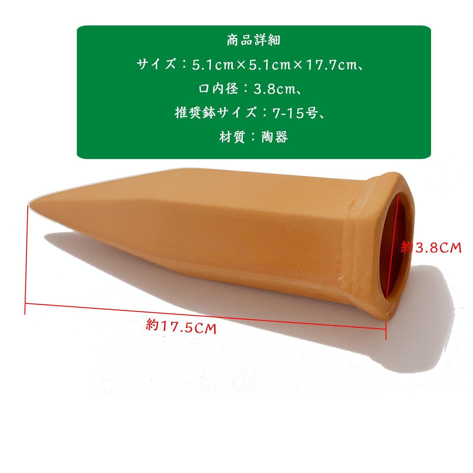 【商品詳細】サイズ:5.1cm×5.1cm×17.7cm、口内径:3.8cm、推奨鉢サイズ:7-15号、材質:環境にも配慮したテラコッタ素材、梱包内容:6本入。