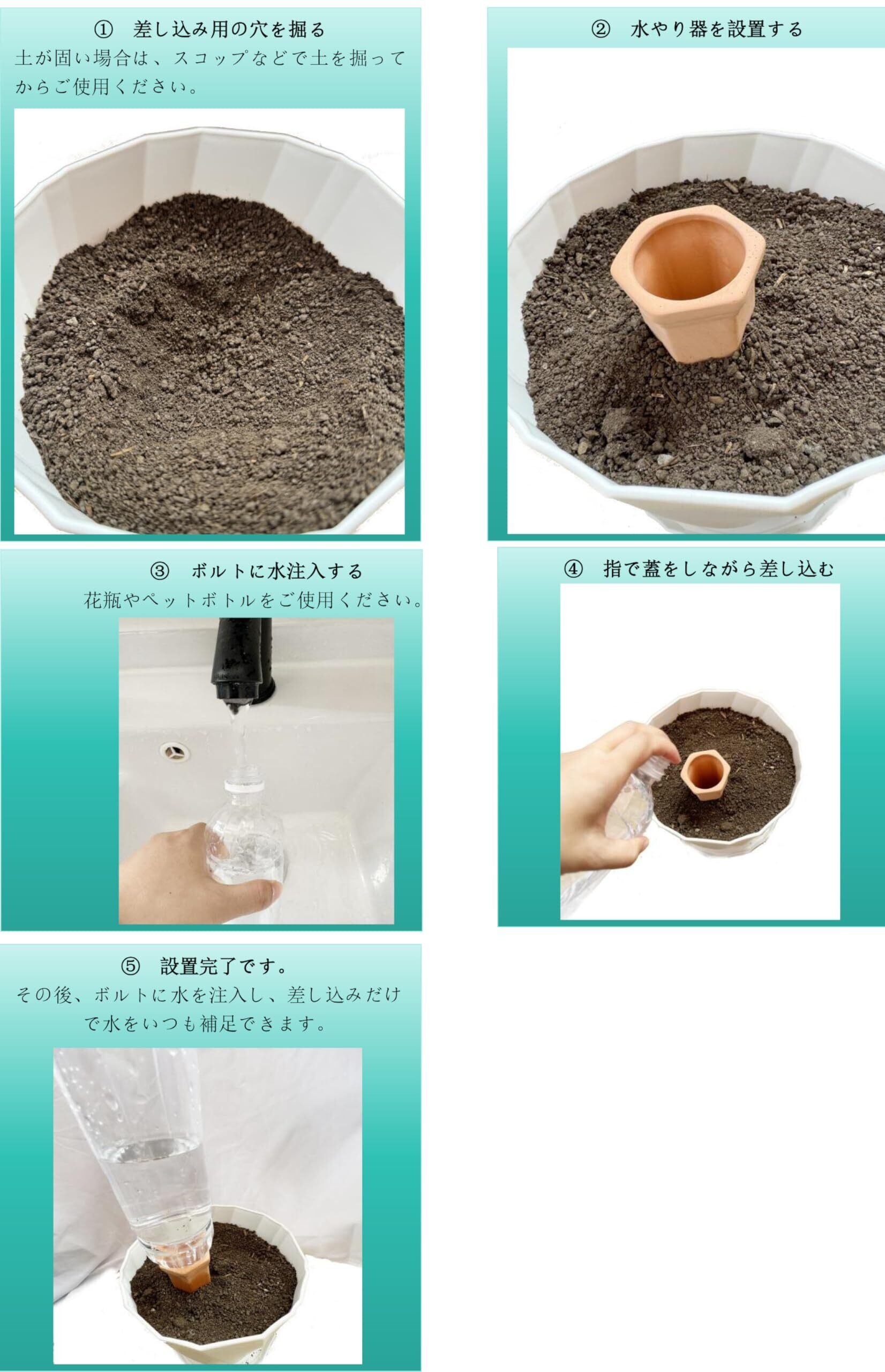 【留守や時間を節約したい方へ】旅行や出張の時、仕事などに忙しい時、大切な植物を自動水やり器にお任せましょう。自動給水器は、水1Lで約5〜7日間給水が持続できるために、時間が節約します。※植物、鉢の大きさ、天気などにより給水持続日数は増減します。