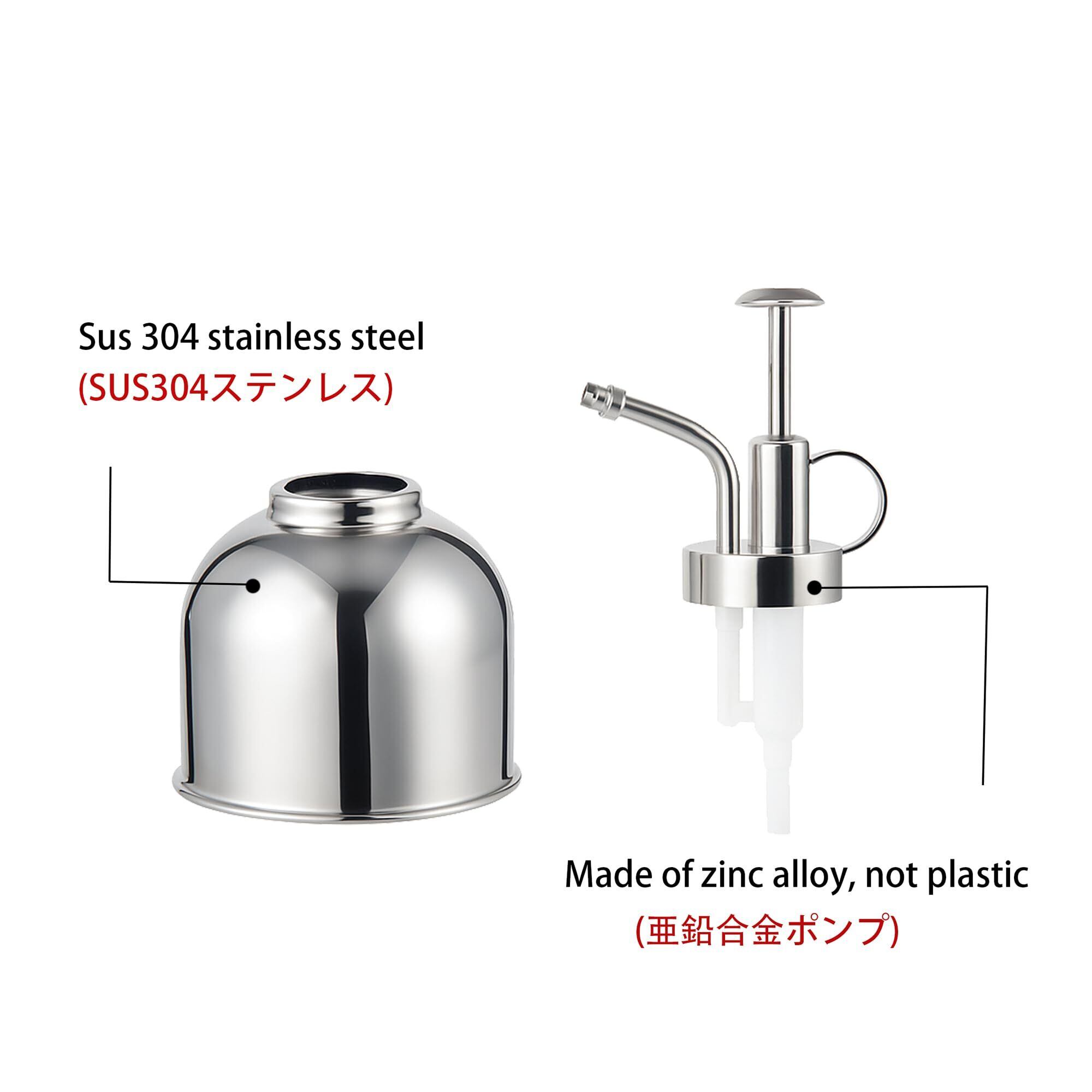 【耐久性に優れた高品質素材】霧吹きの本体にはサビや腐食に強く、衛生的で長持ちするSUS304ステンレスを採用。厚みがあり衝撃にも強いため、落としても壊れにくい堅牢設計です。上部のポンプ部分は亜鉛合金製で、耐摩耗性?耐曲げ性?耐ストレス性に優れ、頻繁な使用にもへたりません。上質素材の組み合わせにより、見た目の美しさと長期的な耐久性を両立しました。