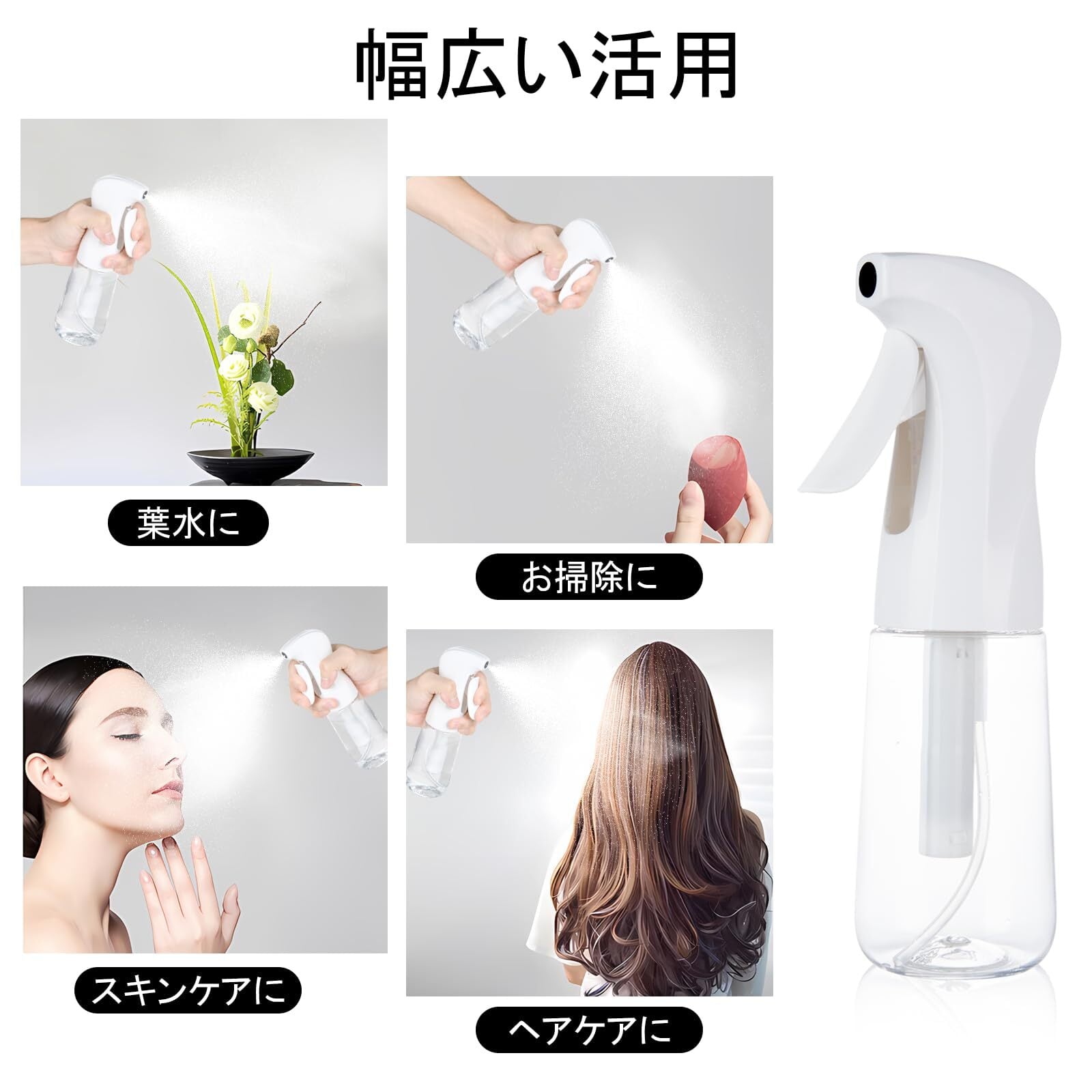 Uervoton スプレーボトル 霧吹き ミストスプレーボトル 連続噴射 極細噴霧 漏れ防止 連続ミスト 葉水 化粧水 アルコール対応 ヘアケア 清掃用 ペット用 空ボトル 200ml 透明 | KSショップ