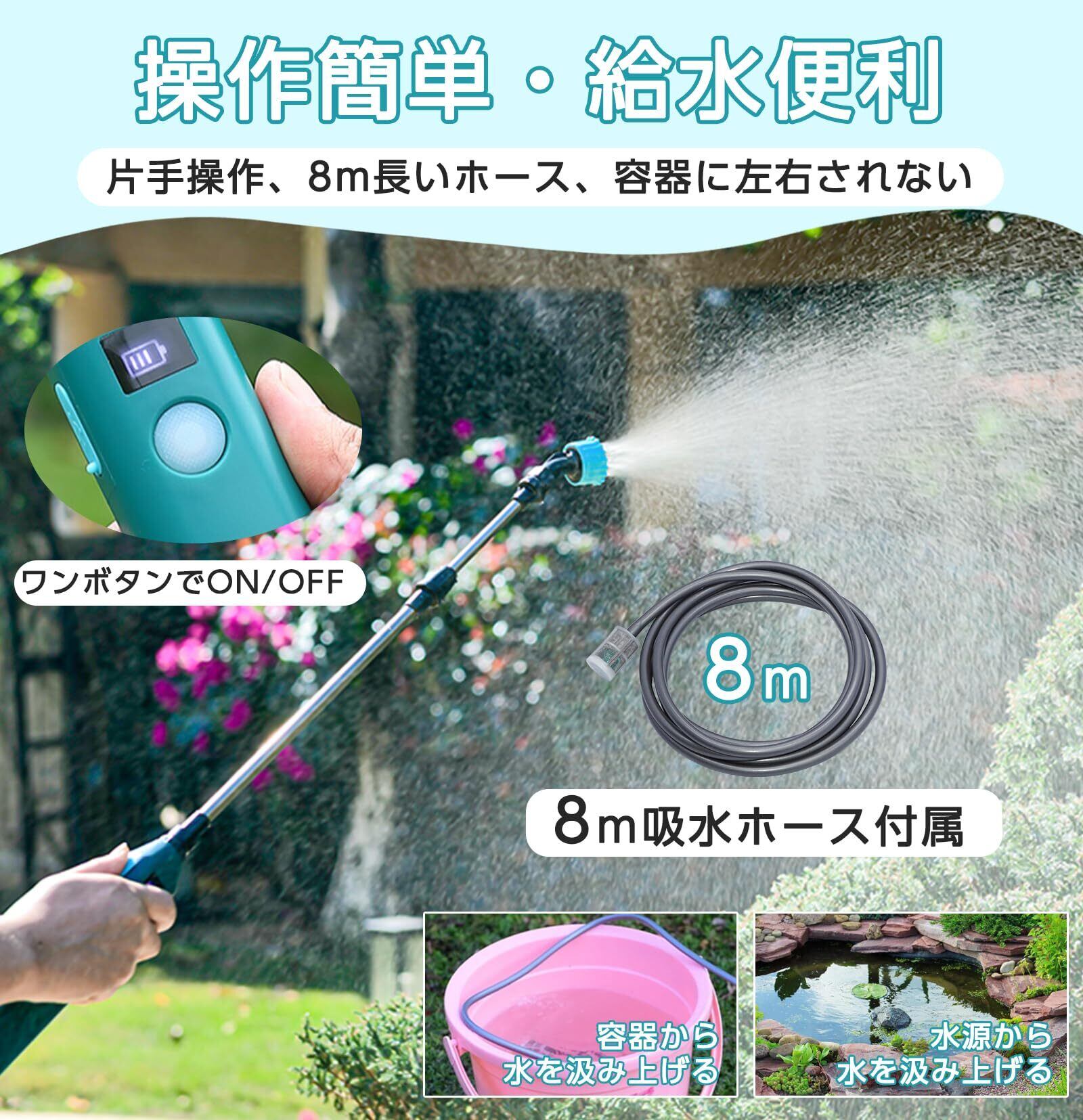 ZenCT 電動霧吹き 電動噴霧器 Type-C充電式 電動スプレー 2400mAh 約2.5時間連続使用 8mホース 3種類のノズル LEDディスプレイ 32~56cm伸縮パイプ タンクなし 軽量 コードレス 家庭菜園 園芸 畑の水やり 自動霧吹き 電動ウォータースプレー 日本語取扱説明書 CT239