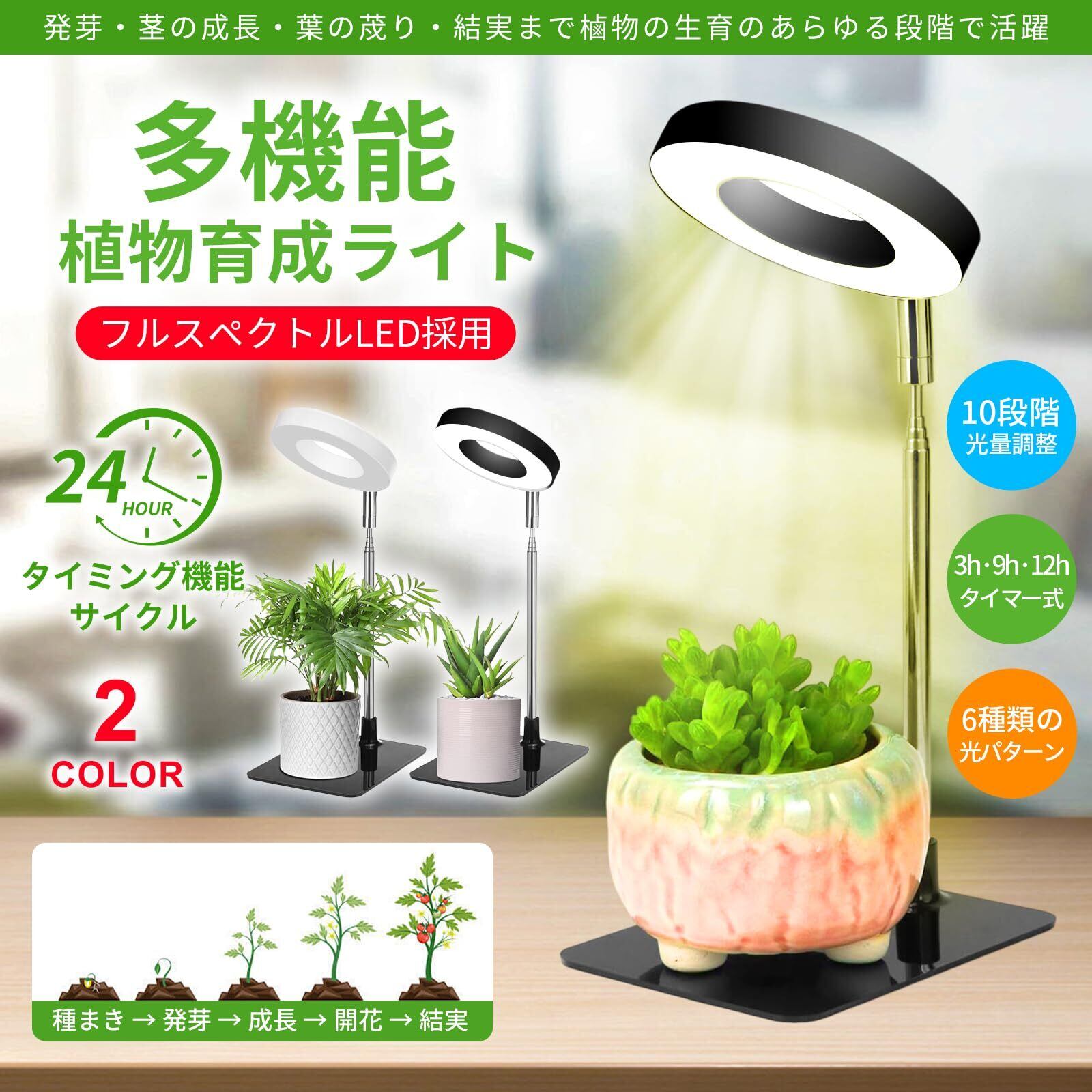 【2つの設置方法・ベース設置/挿入設置】2つの設置方法があります:1.取り外し可能な独立したベース設計、安定性を確保するために植木鉢をベースに置きます。2.調節可能なロッドを鉢植えに挿入し、希望の高さを調整するだけです。いつでもどこでも植物に十分な光を提供し、光の保護下で植物が健全に成長できるようにします。