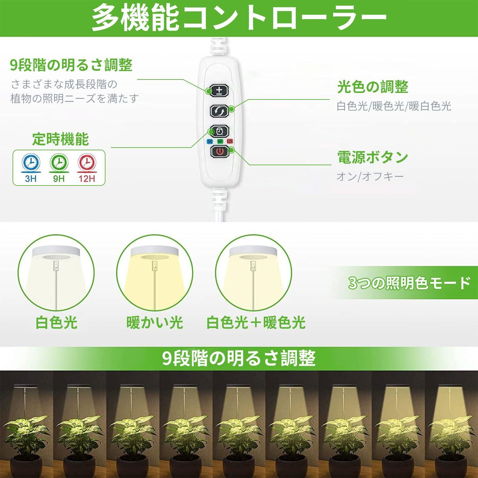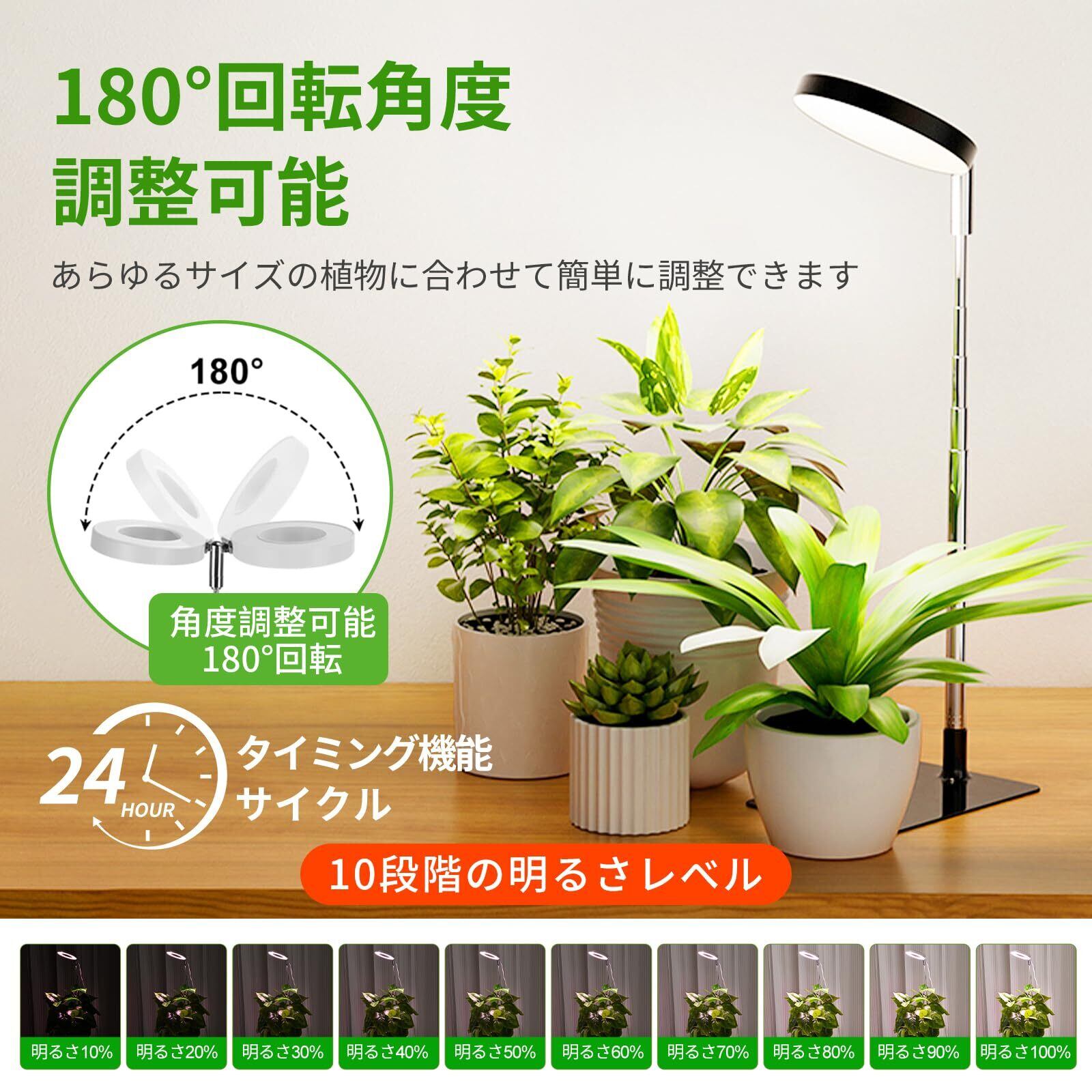 【サイクリック・タイミング機能】植物栽培は3つのループタイマー設定で3/9/12時間、植物による光加減によって異なる時間を設定できます。一度設定でき、毎日自動的にオンとオフになります。 毎日設定する必要はありません。これにより、仕事中や休暇中でも、手作業で植物の世話をする必要がなくなる。注意:充電不可、タイマー機能使用時電源を入れてください。