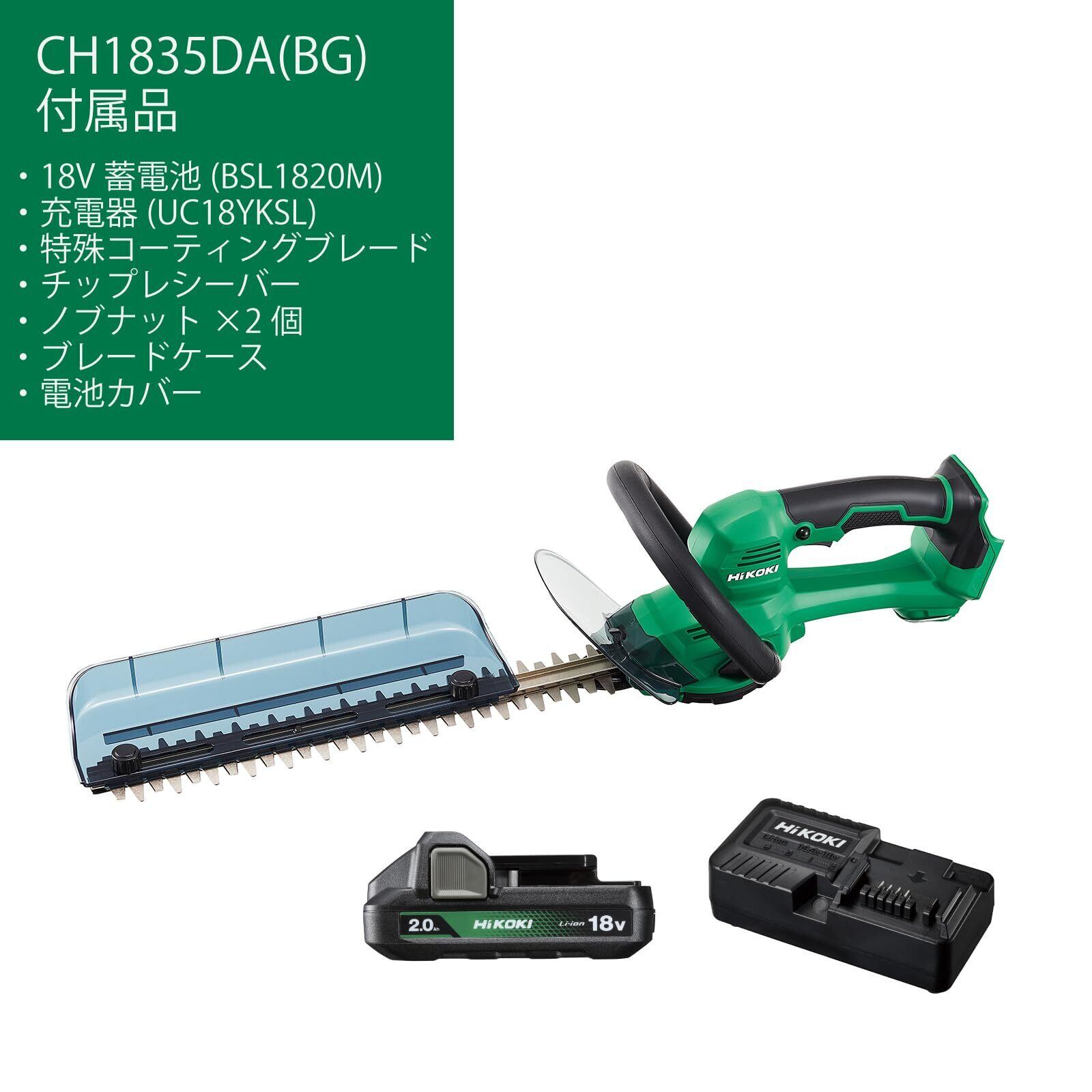 HiKOKI(ハイコーキ) 18V 充電式 ヘッジトリマー 植木バリカン 刈り込み幅 350mm 切断径15mm 2.0Ah蓄電池・充電器付き CH1835DA(BG)
