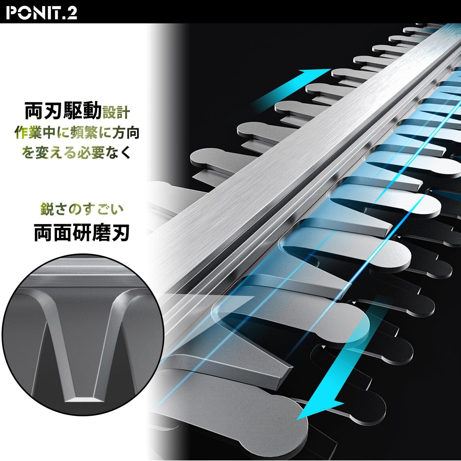【強力純銅モーターと高切断力ブレード】庭木剪定トリマーには高出力の純銅モーターが搭載されており、約3200rpm/minの回転速度を提供し、太くて密集した枝にも効果的に対応、直径18mm未満の枝なら、あらかじめ剪定しなくてもそのままトリミングが可能です。二面研磨ブレードは高速往復刈りを通じて高い切断力を発揮し、固い枝でもゆっくり切り込めば切断できます。
