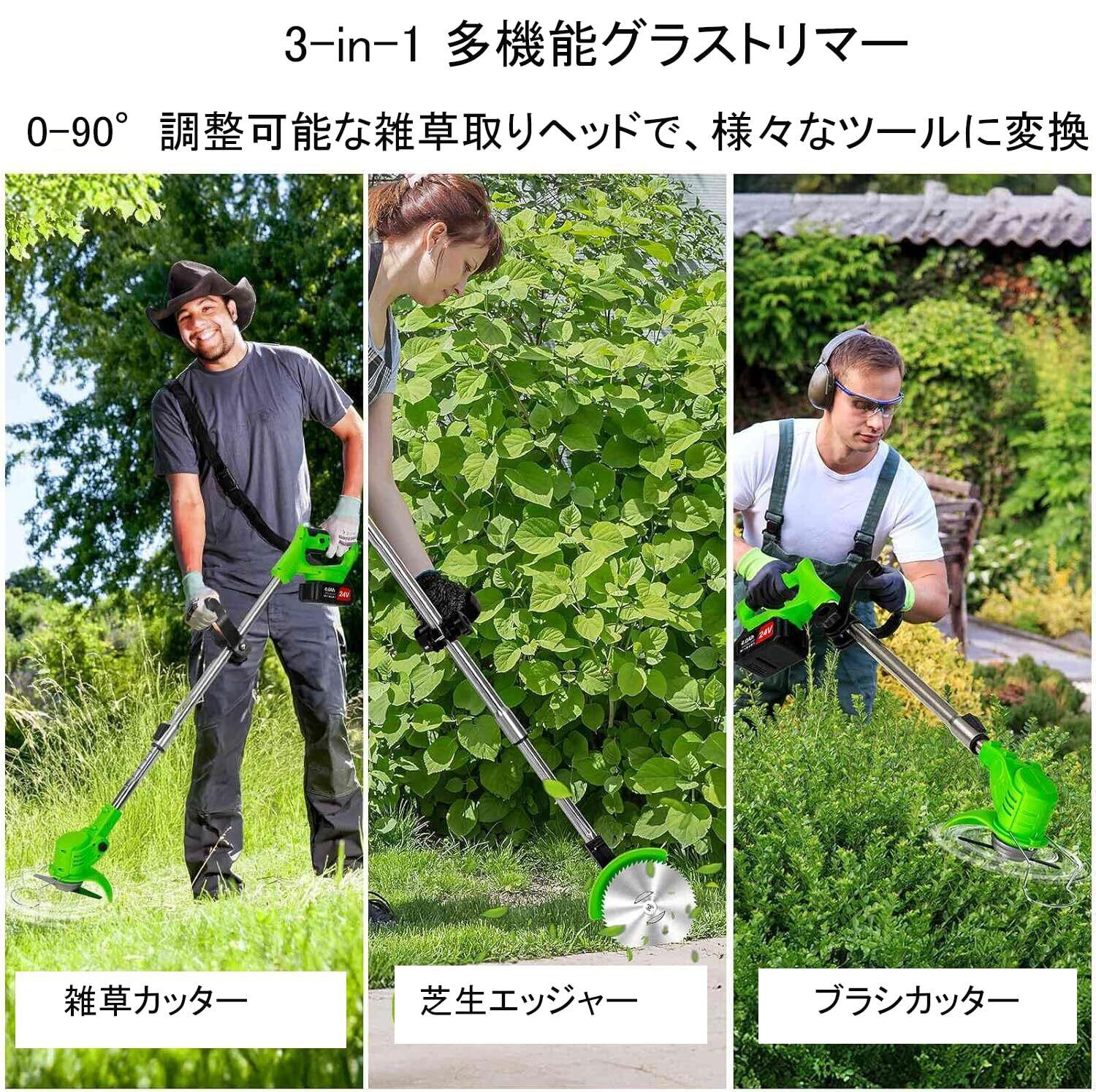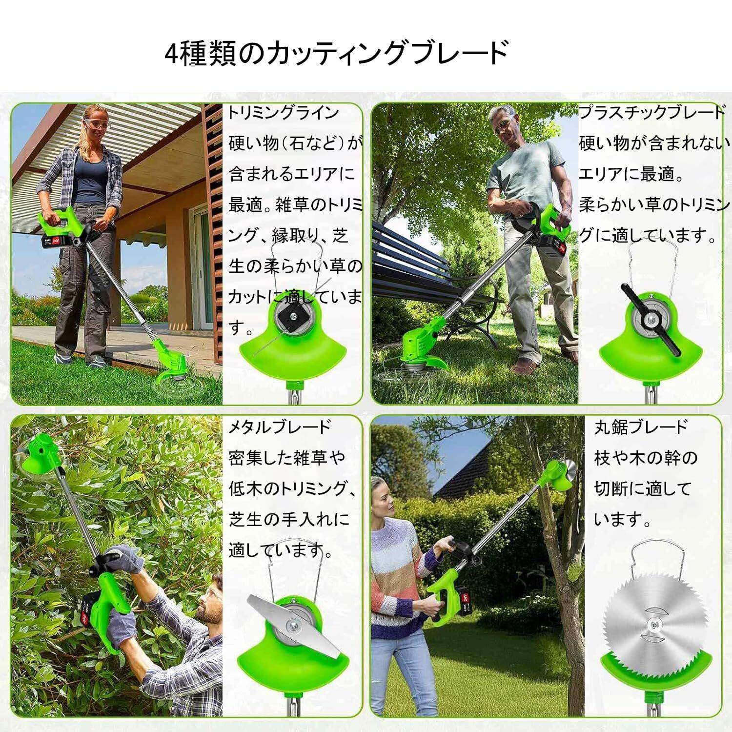 【多地形替刃】草刈り機 充電式 コードレスはどこでも気軽に使えます!コードレスタイプでコンセントいなくても使えます。ドイツ品質の草刈り機は安全で静音性が強く、そして長い時間お使いいただけます。1台多役草刈機は枝切り、芝生 敷地、畑、雑草、植木様々な用途があって壁際や低い場所も手楽にカットできます。