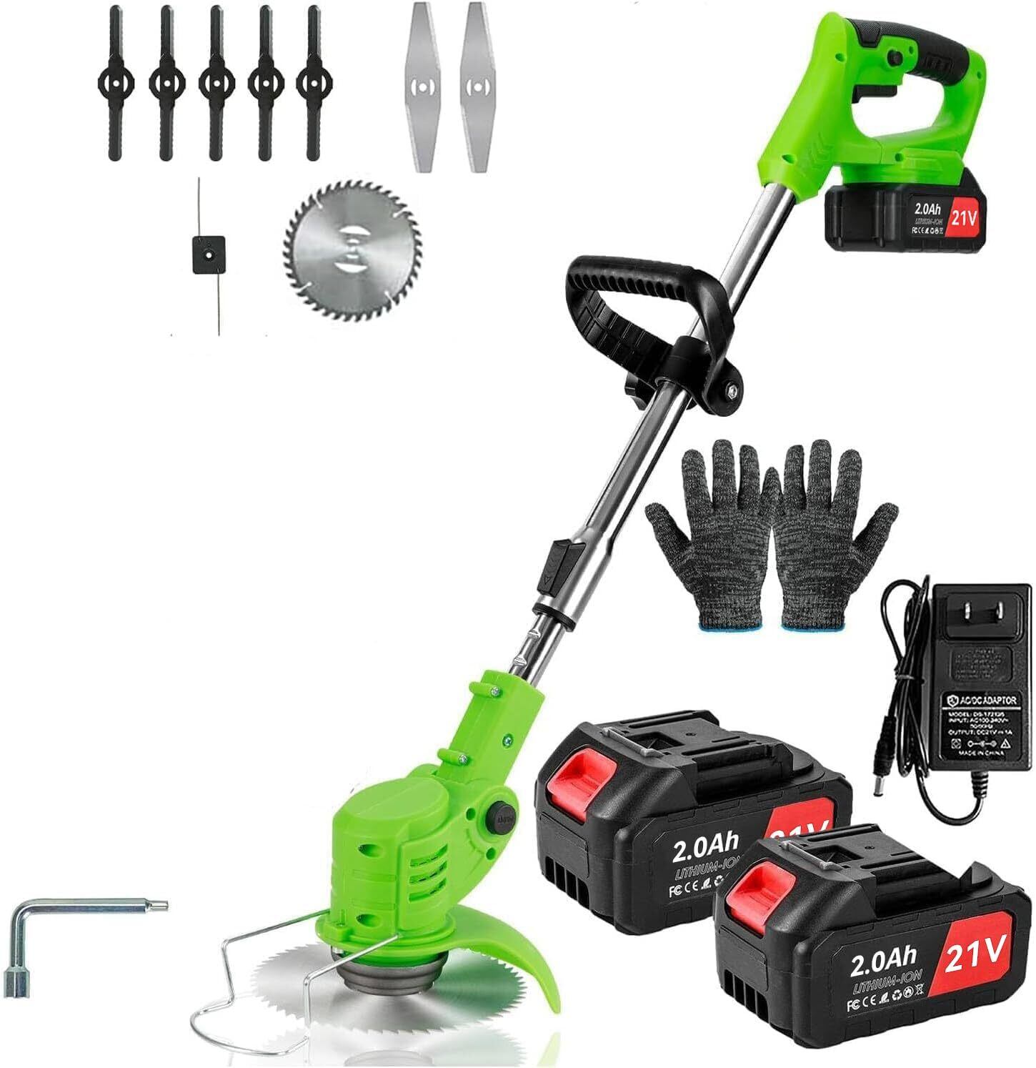 2025最新型 電動草刈り機 草刈り機 充電式草刈機 折りたたみ式 コードレス 21V 草刈機 バッテリー式 雑草取り器具 2000mAh大容量バッテリー 90°調整可能 替え刃4種類 バッテリー2個 軽量 枝切り 芝生 敷地 畑 雑草 植木 日本語説明書付き [並行輸入品]