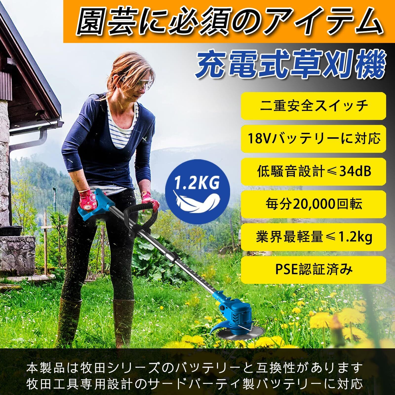 2025年最新型 電動 草刈り機 充電式 BL18v電池互換 4000mAh総容量LED表示付&PSE認証 34dB低騒音 1.2kg軽量 20000回転/分高性能強力純銅モーター 伸縮可 角度調整可 多替刃付き コードレス 充電式刈払機 セキュリティ設計 保管が楽 芝生・畑・雑草・植木・菜園・農業家庭用芝刈り機・日本語説明書付き 青 6インチ | KSショップ