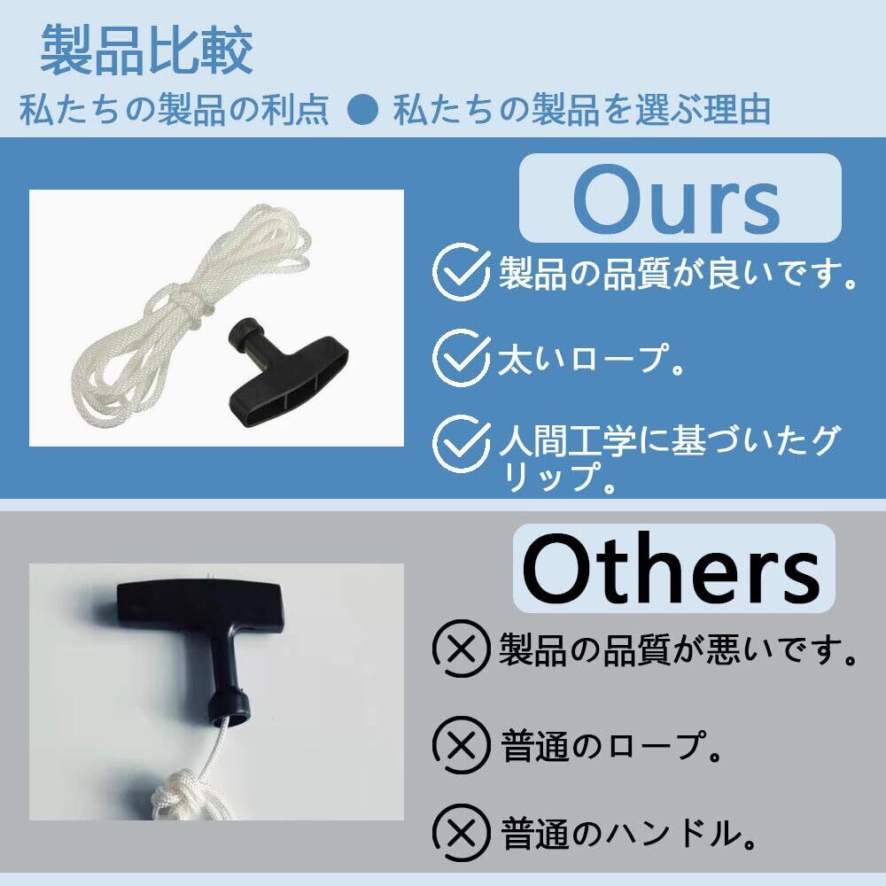 【素材】エンジンスターターのハンドルはABS樹脂でできており、硬くて傷つきにくく、ロープは伸縮性があり伸縮性のあるナイロン製です。