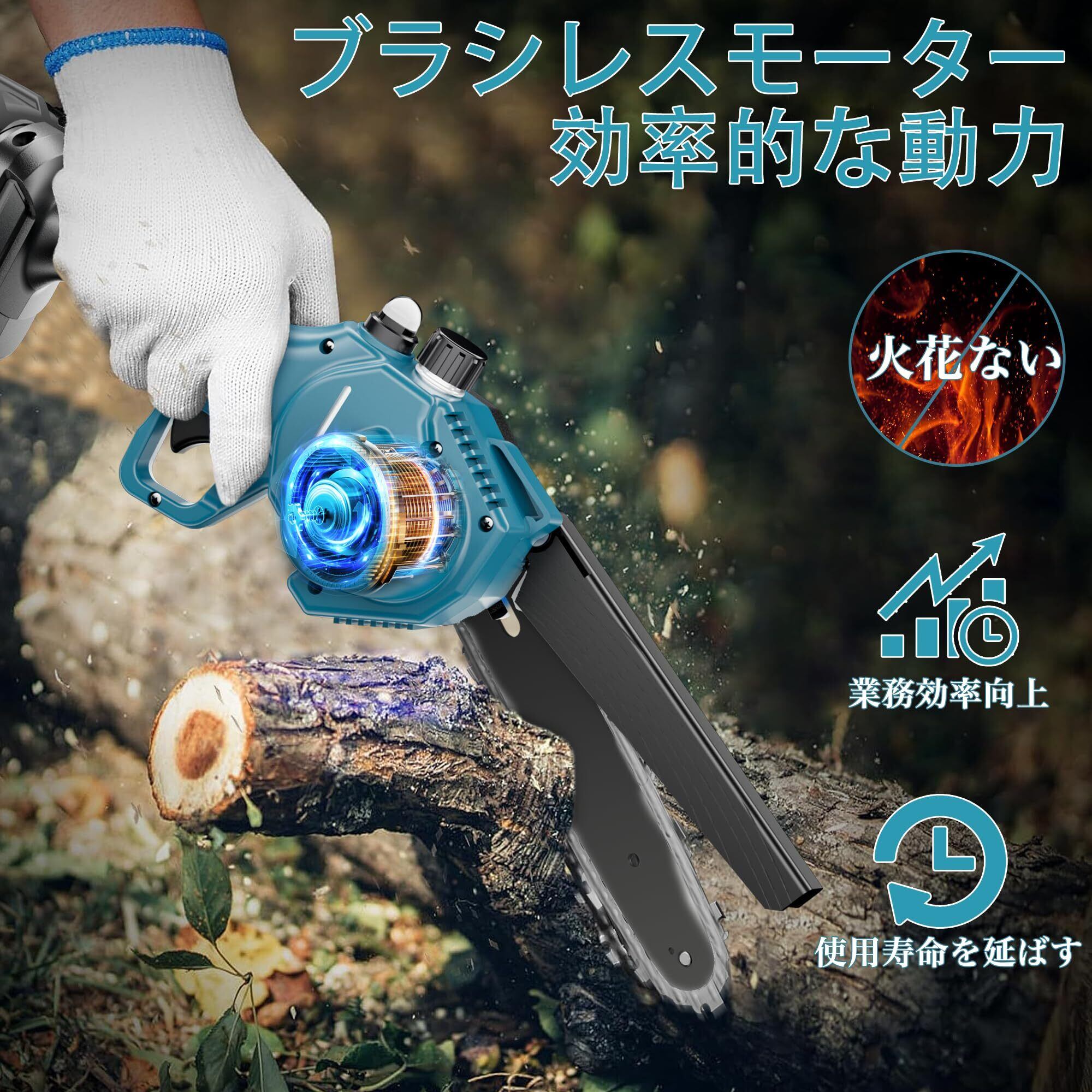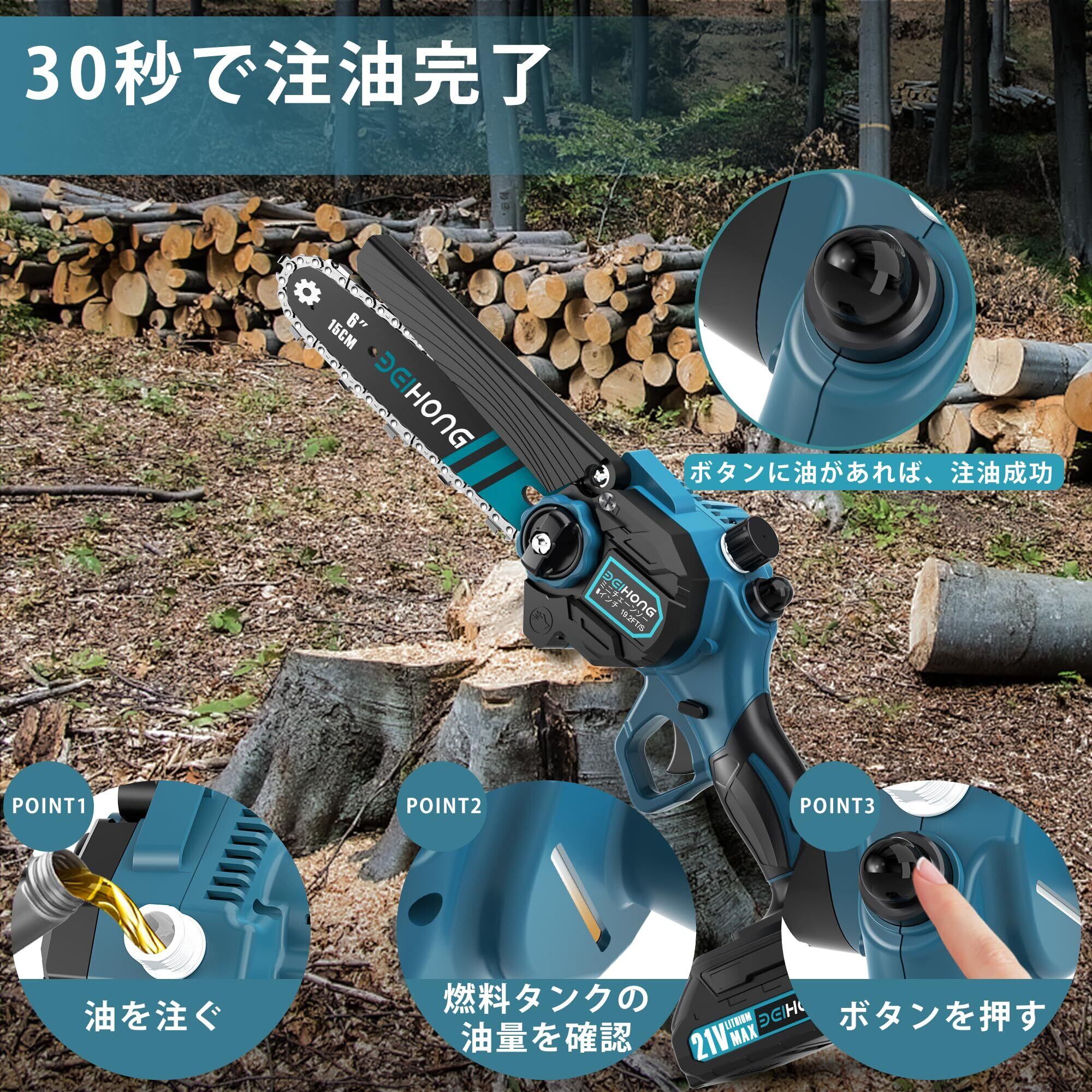 BEI & HONG チェーンソー 充電式 6インチ 小型チェーンソー ブラシレスモーター バッテリ2個付き残量表示 給油システム チェーンは工具不要 マキタバッテリ対応 安全ロック 片手軽量 収納ケース 日本語取扱説明書 | KSショップ