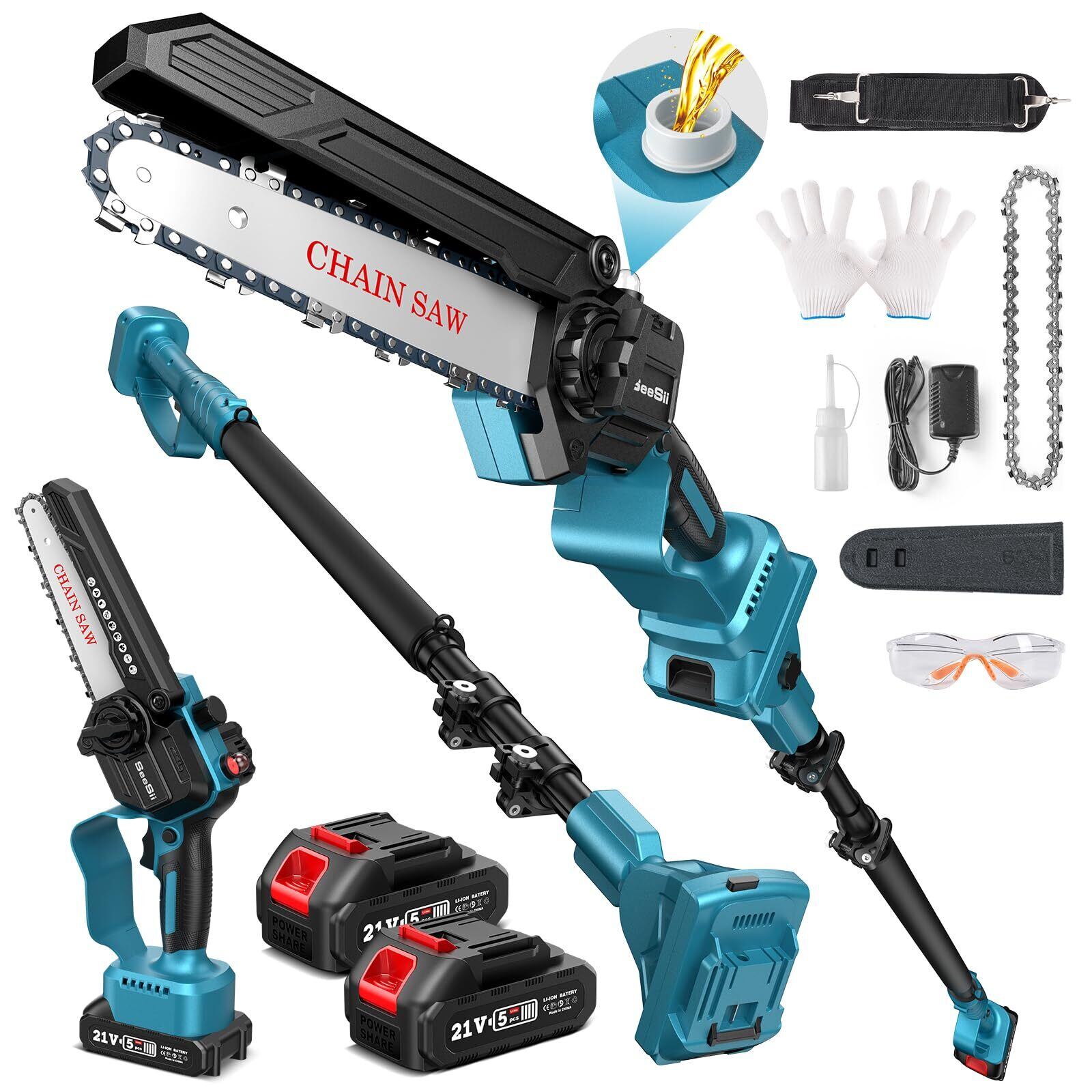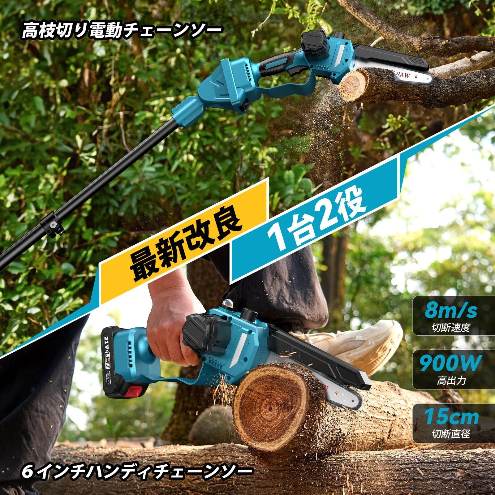 SEESII 高枝チェーンソー 電動コードレス 6インチ 充電式 ハンディチェーンソー 延長ポール付き(130〜250cm無段階調節)オイル給油機能搭載 強力パワー 高枝剪定・伐採 木材カット 園芸・庭木のお手入れ用 替刃&バッテリー2個付き | KSショップ