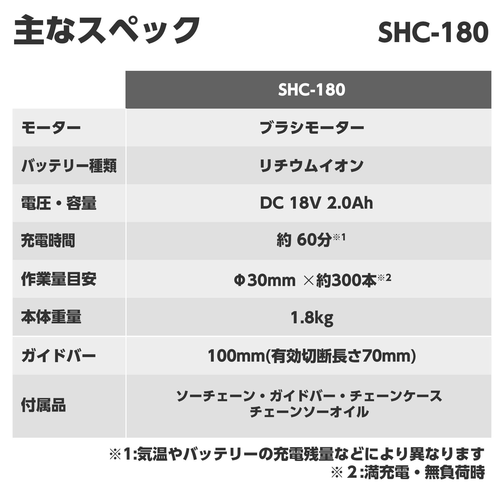 工進(KOSHIN) 18V 2.0Ah 充電式 ハンディ チェーンソー SHC-180 【バッテリー・充電器付】 枝切り 剪定 軽量 コンパクト 小型