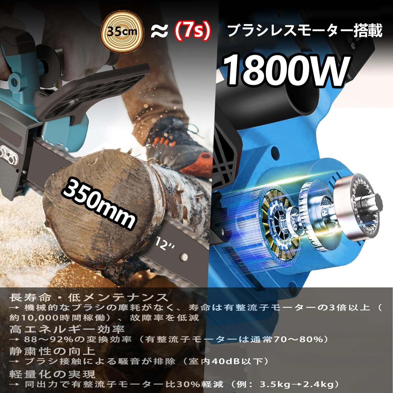 【強力なブラシレスモーター&優れた耐久性】1800W高トルク外転子ブラシレスモーターを搭載し、強力な動力と安定した性能を提供します。火花を発生せず、閃光のような切断体験を提供します。寿命は従来のブラシ付きモーターの3〜5倍です。