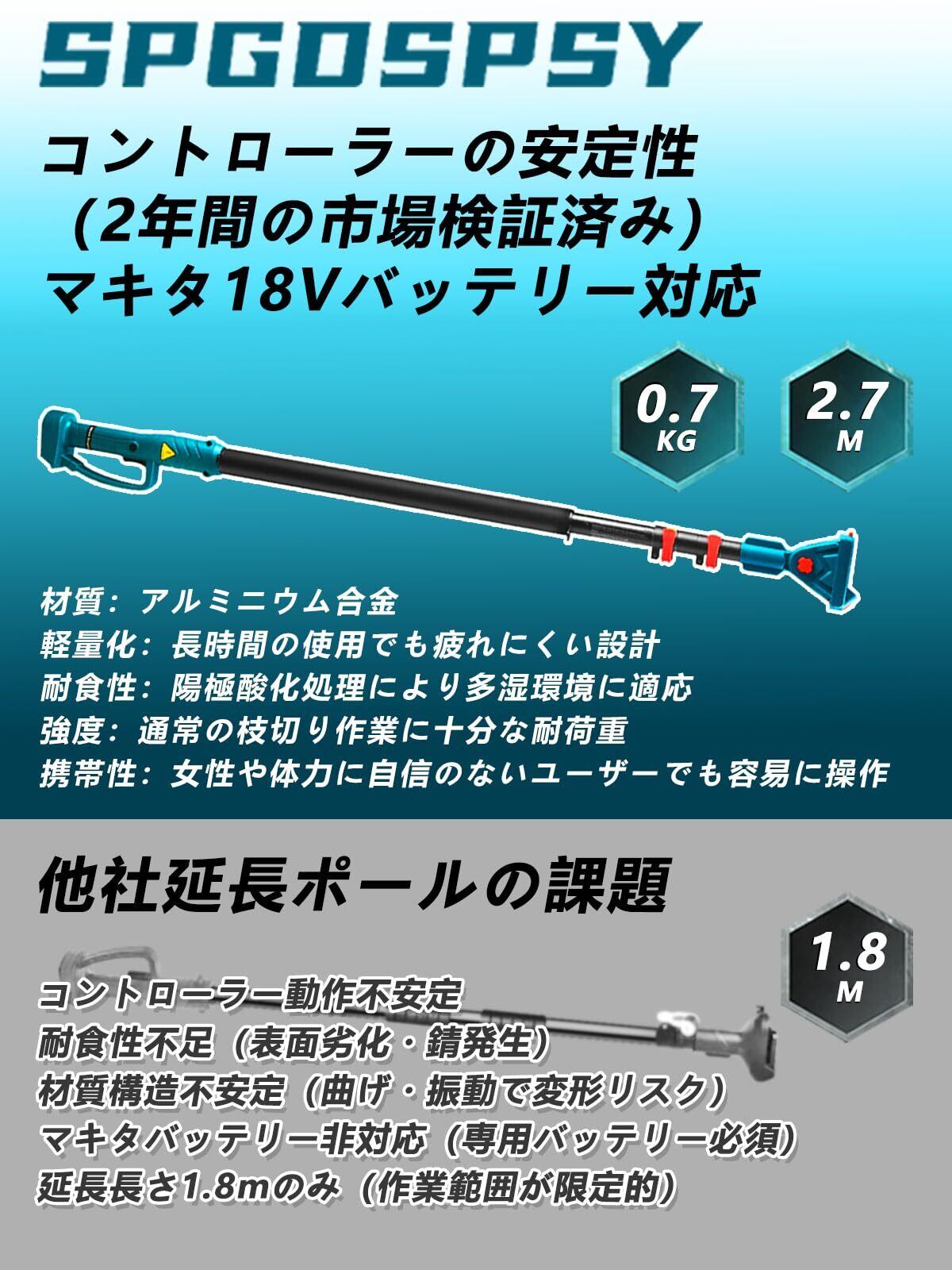 高枝チェーンソー 高枝電動バサミ 18v互換 伸縮2.7M ブラシレスモーター 4.0Ah総容量 軽量 コードレス たかえだ 電動 チェーンソー 電動剪定バサミ 1台4役セット・プロ伐採・園芸・木工切断・庭木の剪定|日本語説明書付(青) | KSショップ