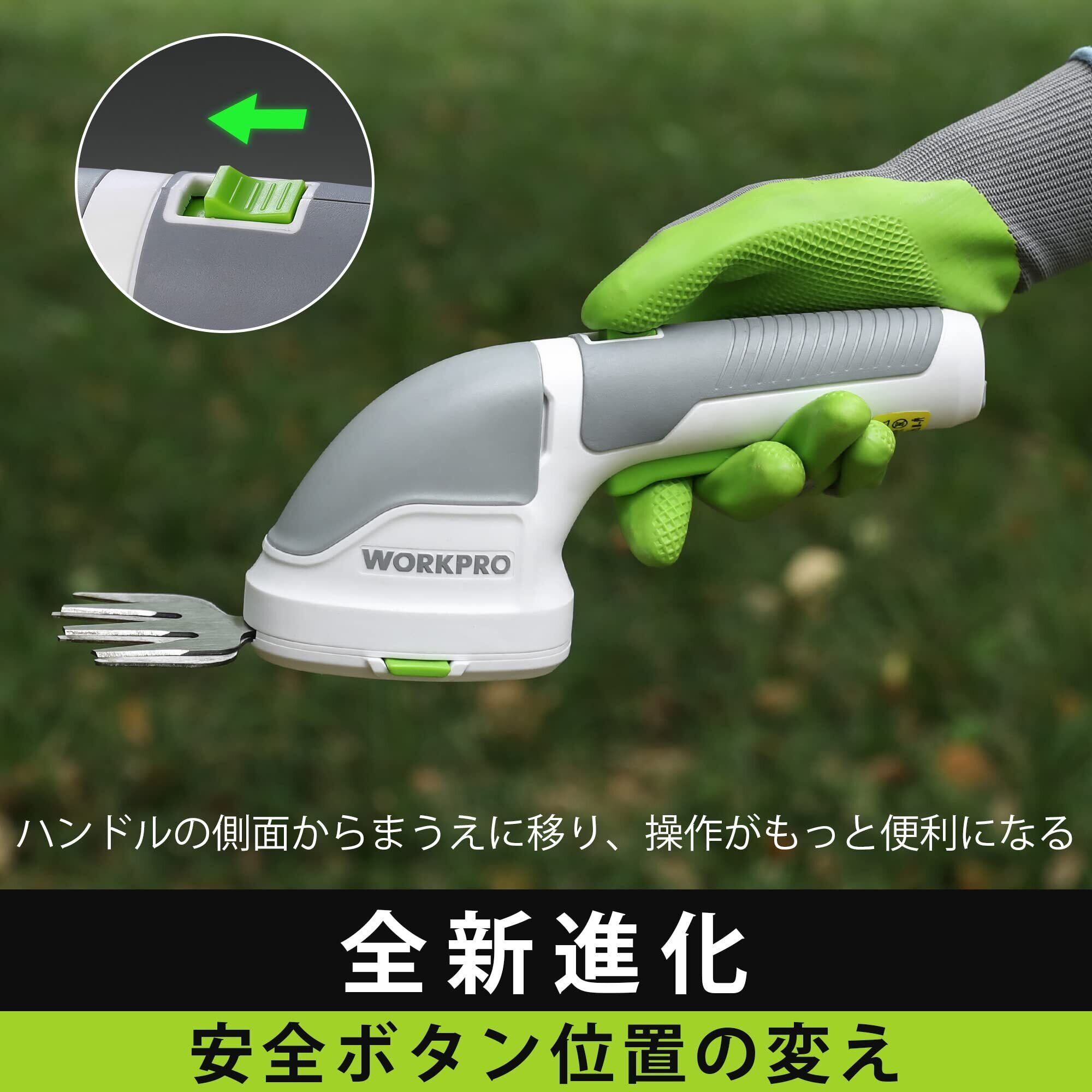 [安全ボタン進化]WORKPRO 芝生バリカン ガーデンバリカン 生垣バリカン 芝刈り機 一台二役 コードレス 3.6V充電式 Type-C充電ポート 二重安全ロック ブレード2枚付 バリカン刈幅75mm トリマー刈幅120mm 最大開口7.8mm 剪定 植木 園芸 機種型番W159025 | KSショップ