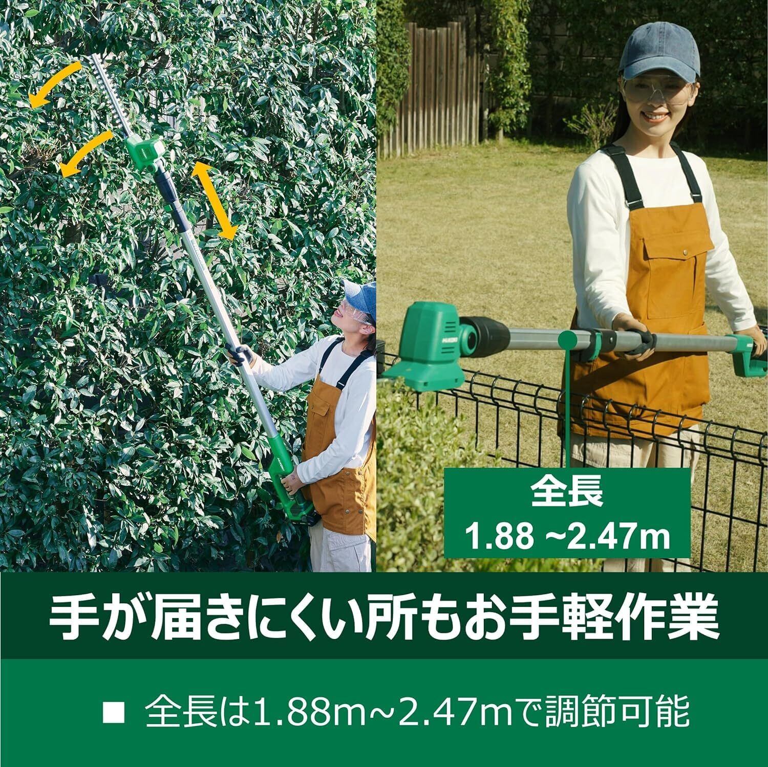 手が届きにくいところの作業も自分で手軽に。高い木の刈込みも枝払いも、らくらく作業。